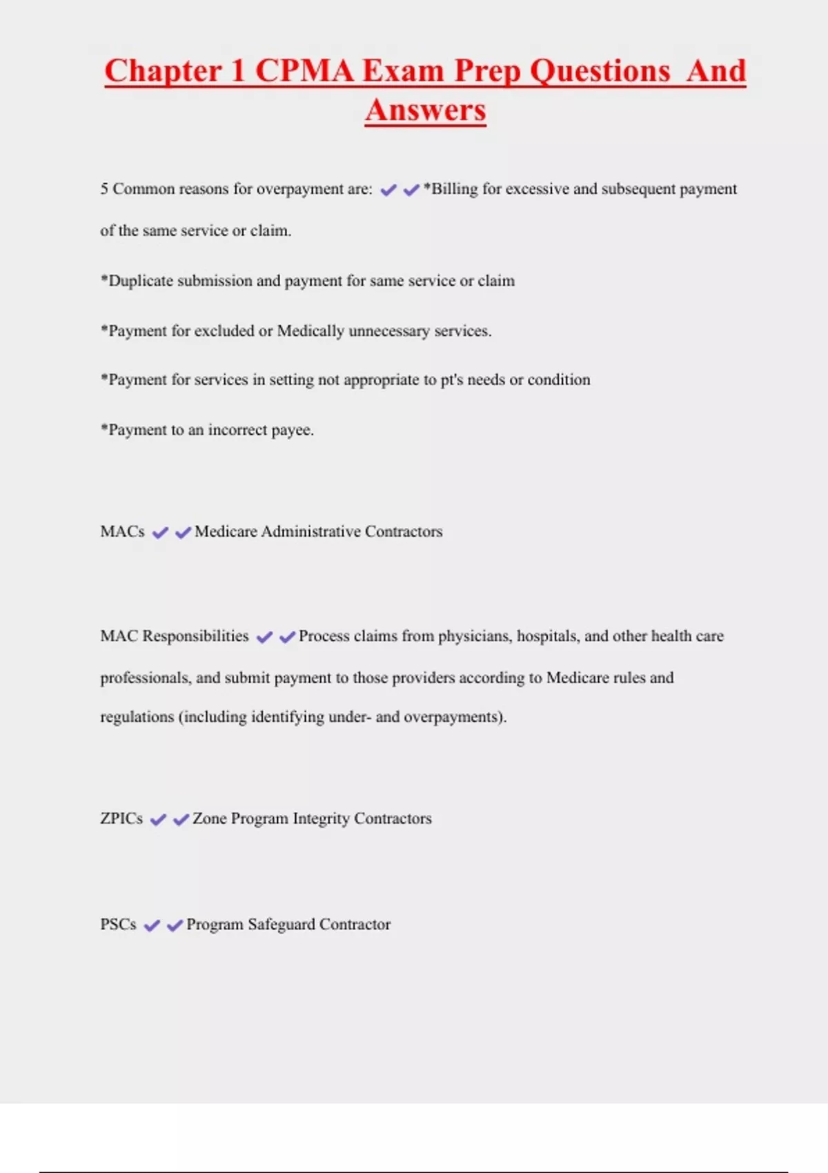 Chapter 1 CPMA Exam Prep Questions And Answers