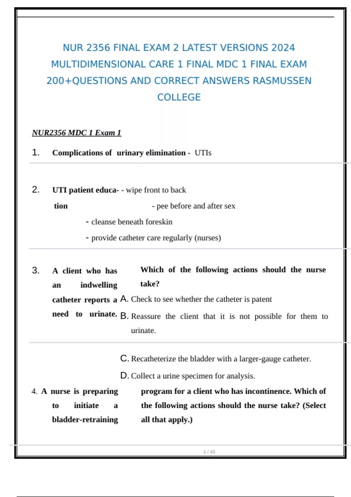 NUR2356 MDC 1 Exam 1