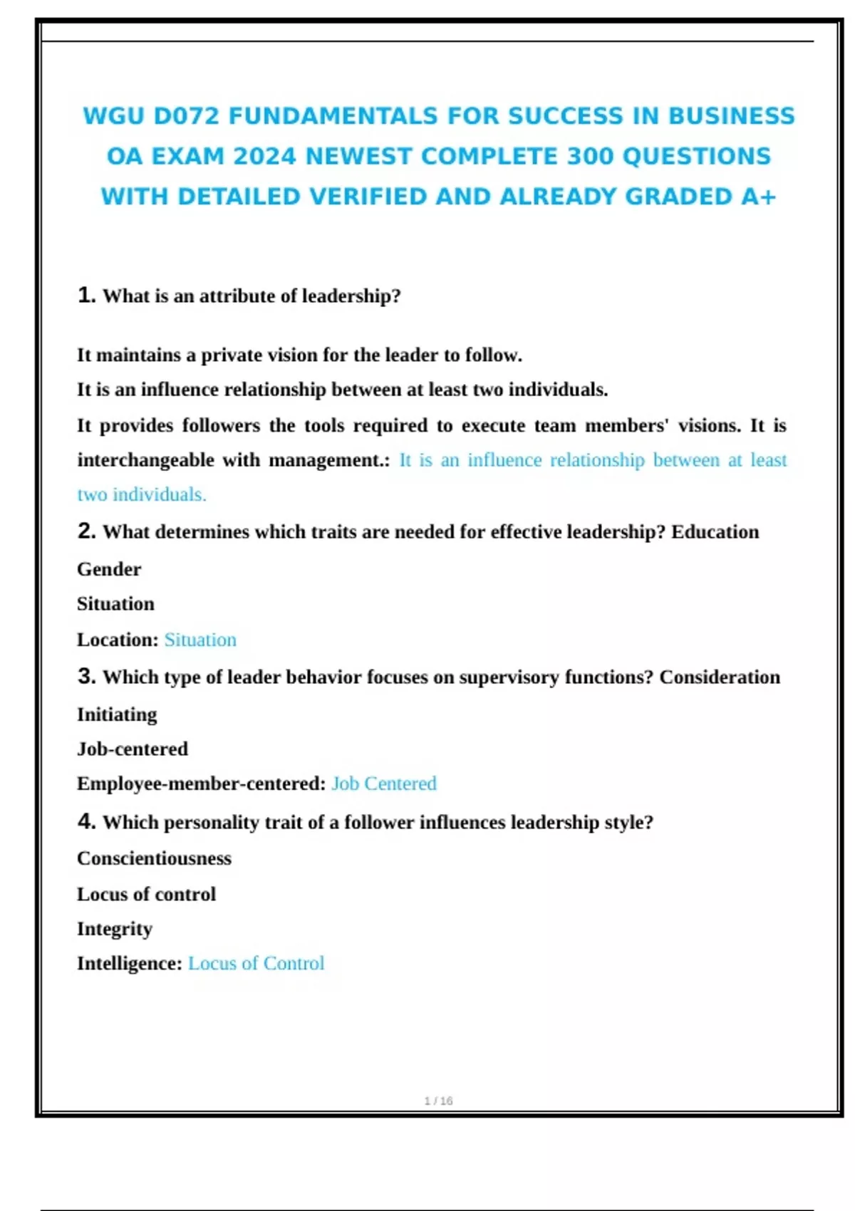1. What is an attribute of leadership?