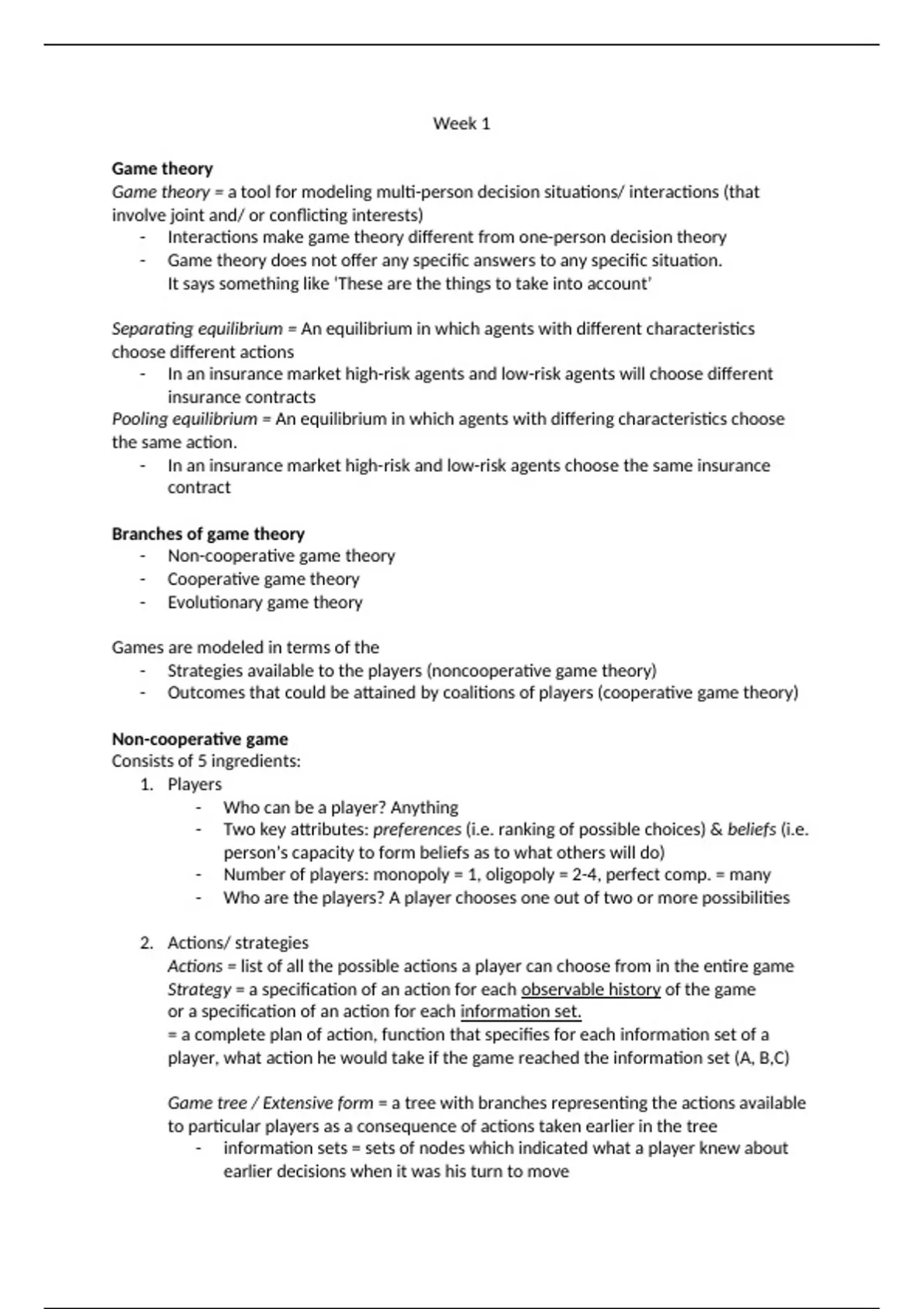 Complete samenvatting Game Theory For Managers