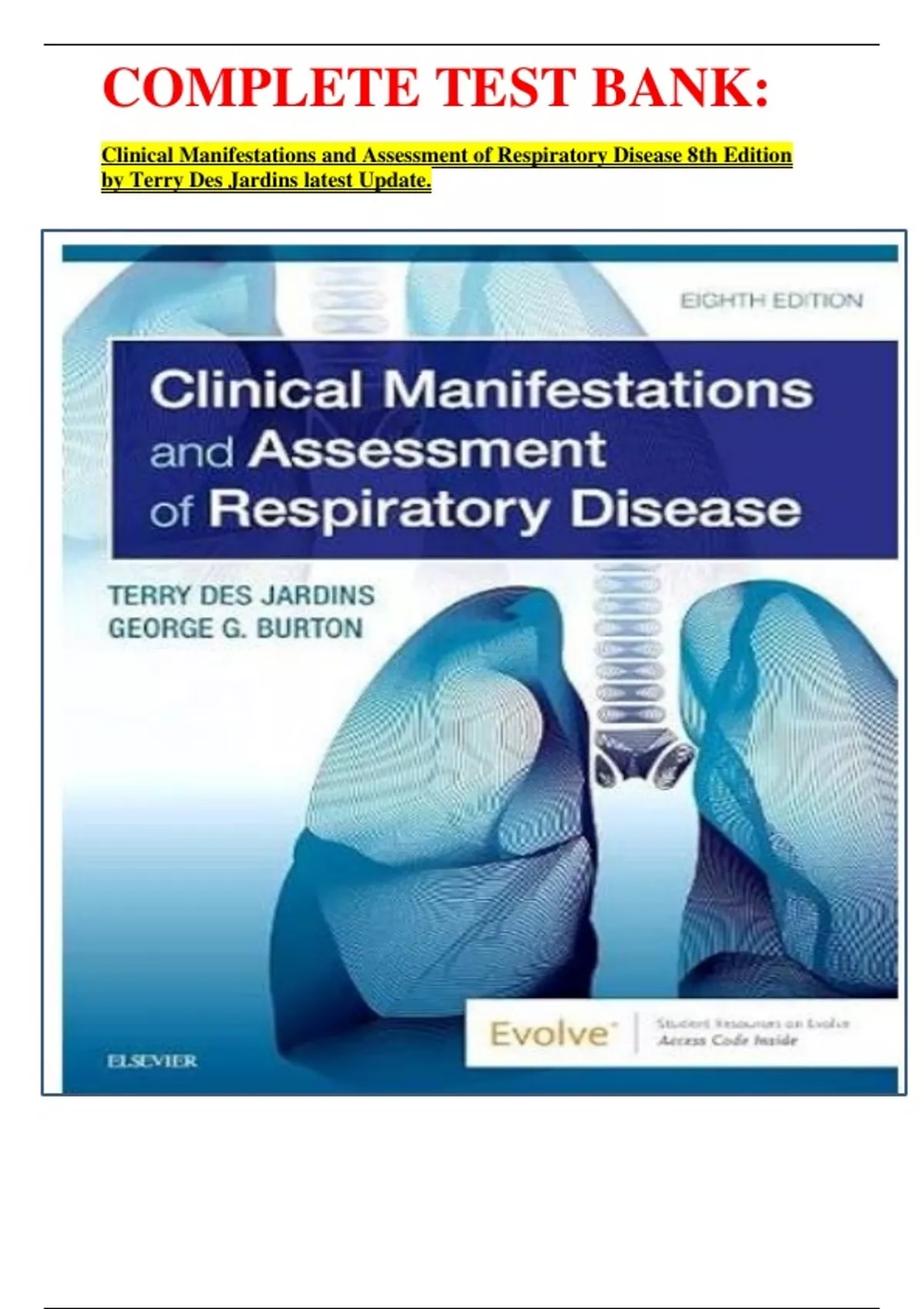 Des Jardins: Clinical Manifestations And Assessment Of Respiratory Disease, 8th