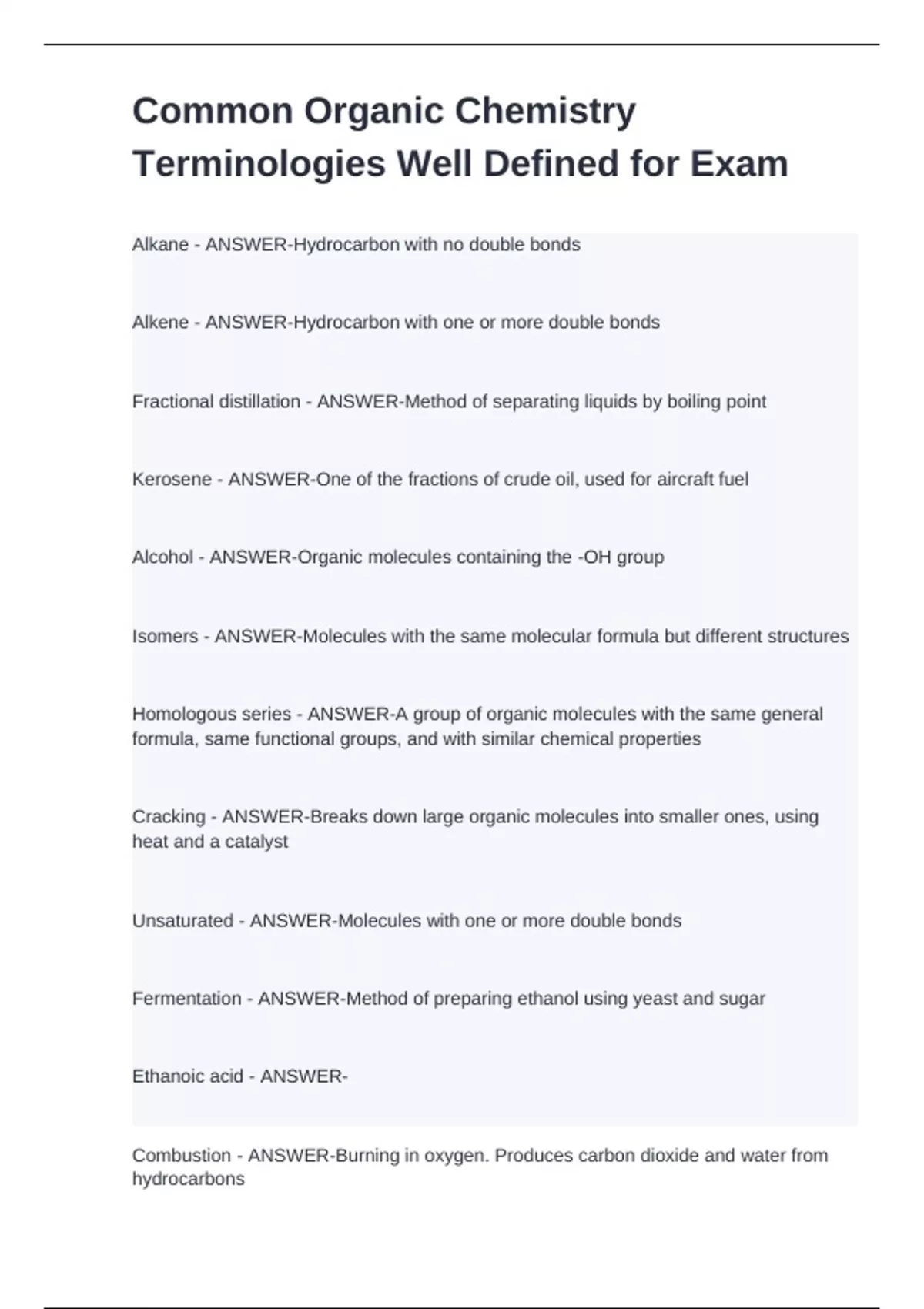 Homologous series - ANSWER-A group of organic molecules with the same general