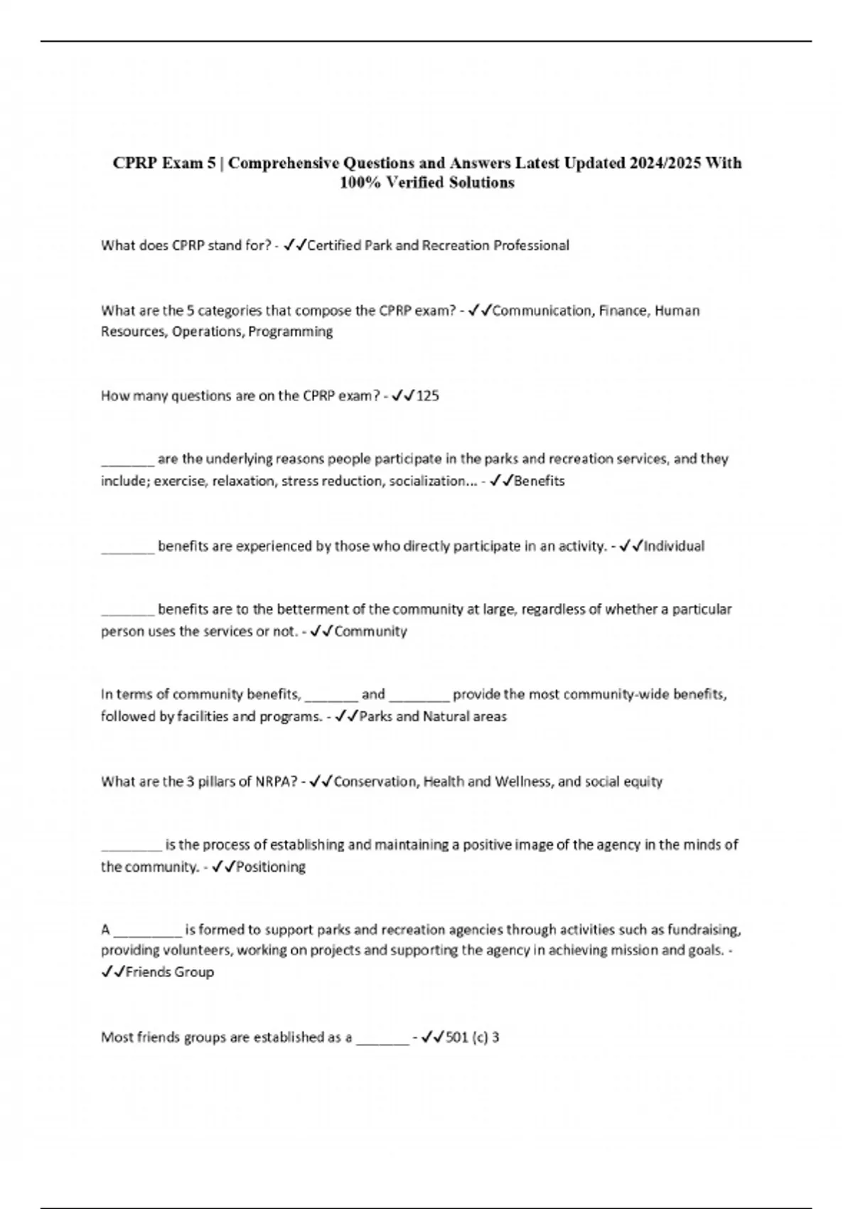 CPRP Exam 5 | Comprehensive Questions and Answers Latest Updated 2024/2025 With 100% Verified Solutions