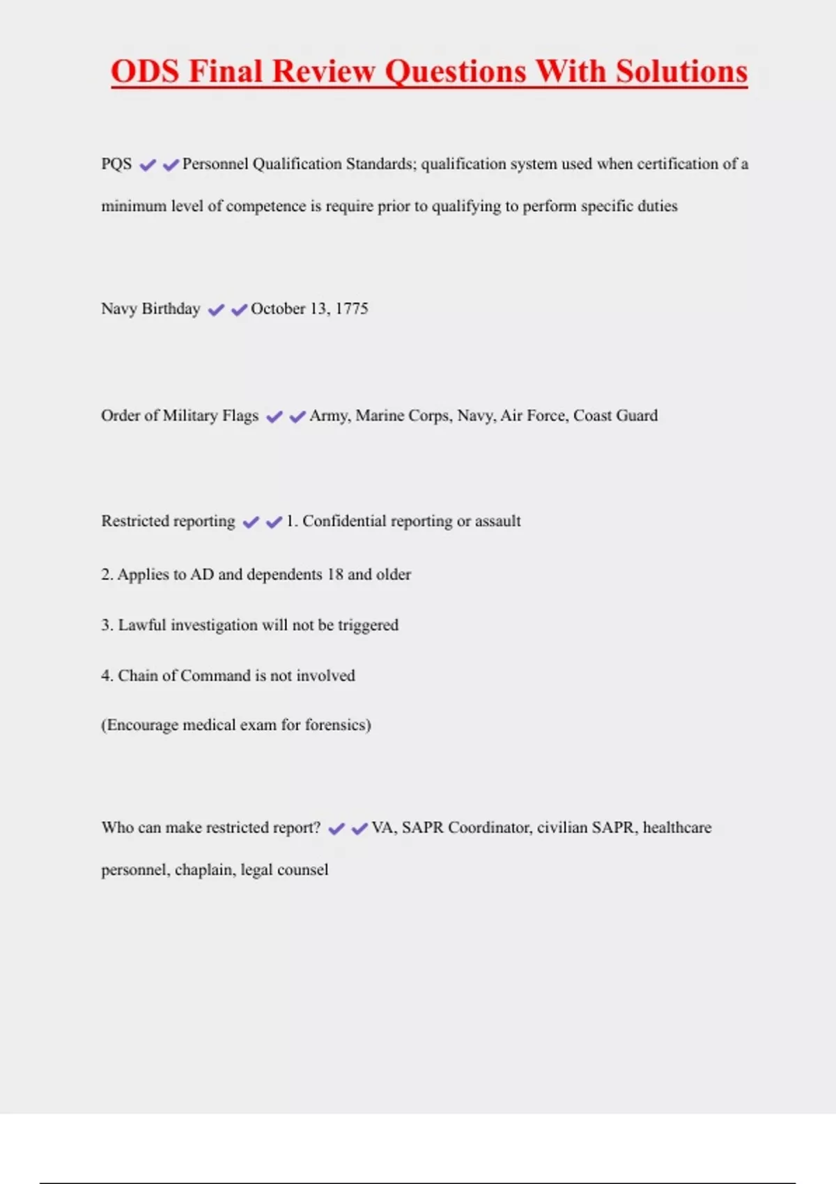 , ODS Final Review Questions With Solutions