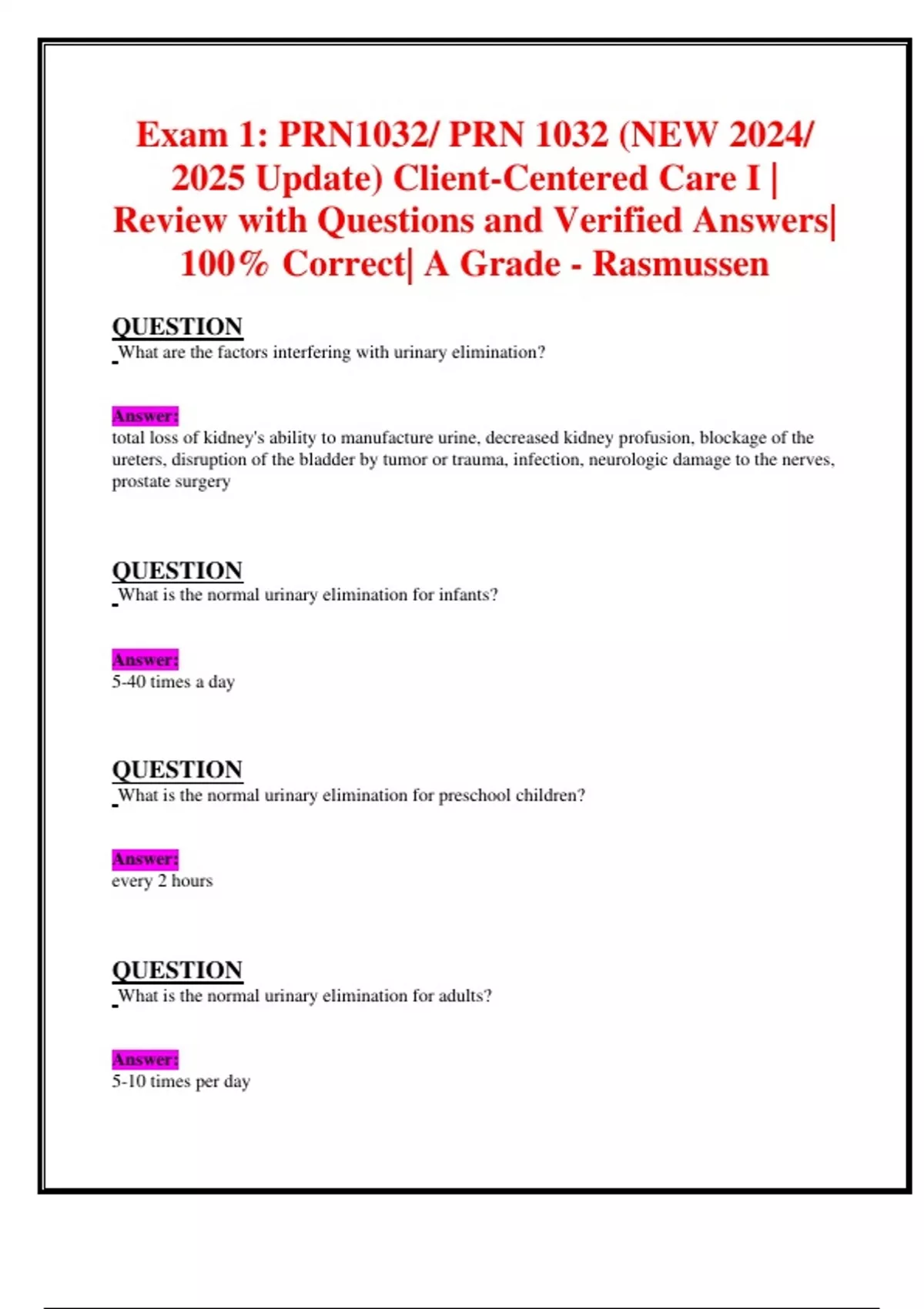 Exam 1: PRN1032/ PRN 1032 (NEW 2024/