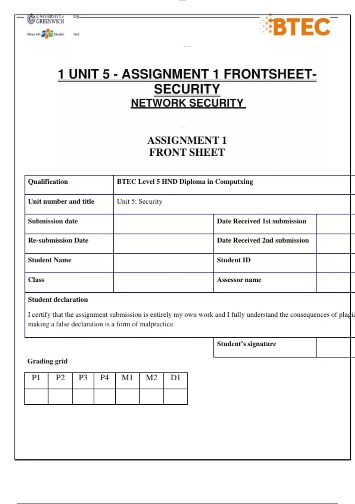 1 UNIT 5 - ASSIGNMENT 1 FRONTSHEET-