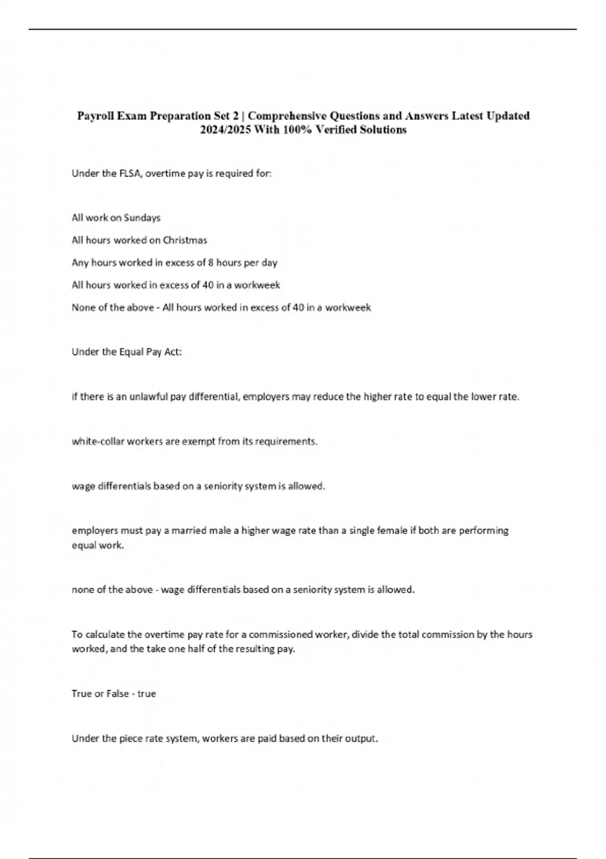 Payroll Exam Preparation Set 2 | Comprehensive Questions and Answers Latest Updated 2024/2025 With 100% Verified Solution