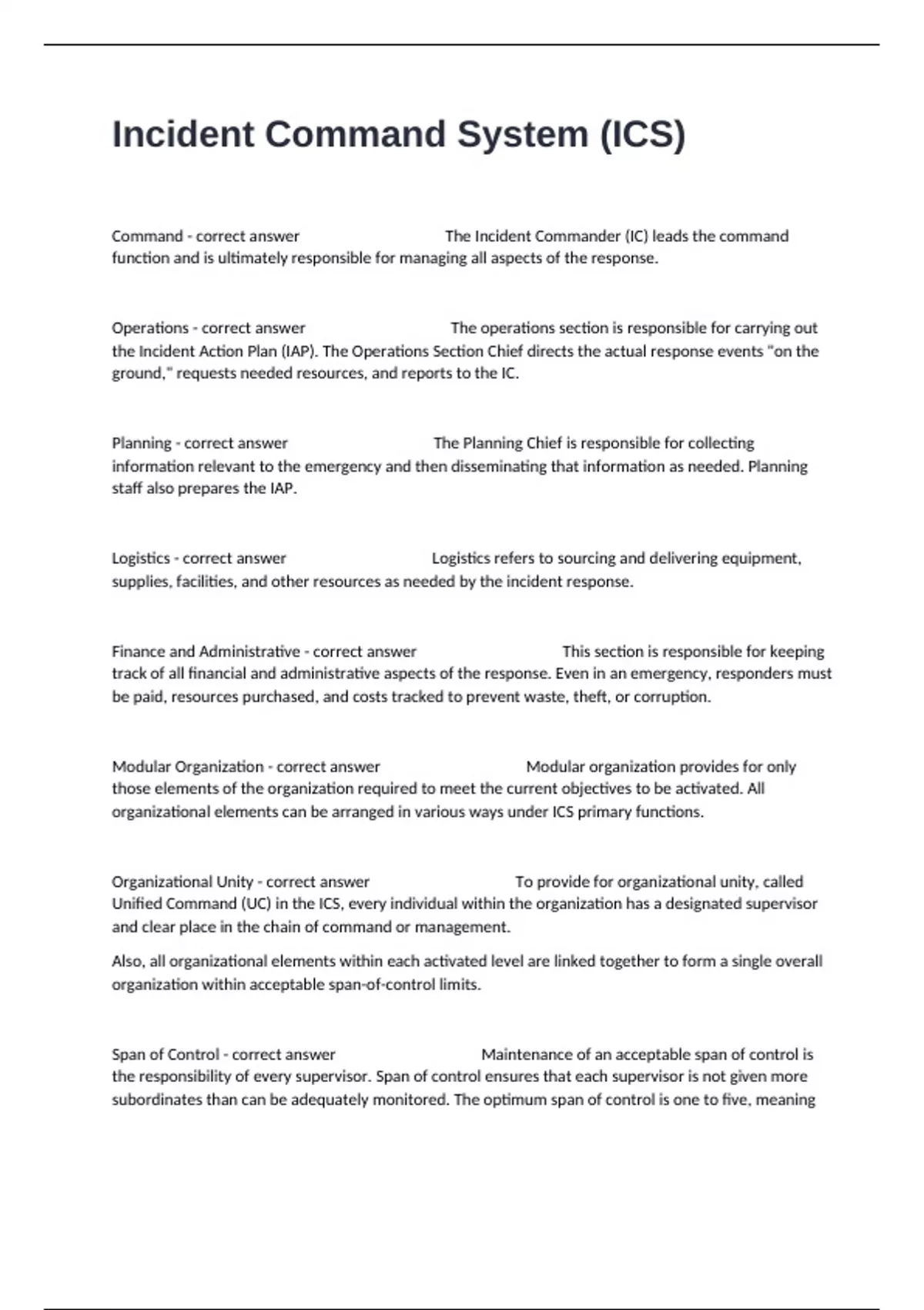 Incident Command System (ICS) Assessment Questions And Answers Graded A+.