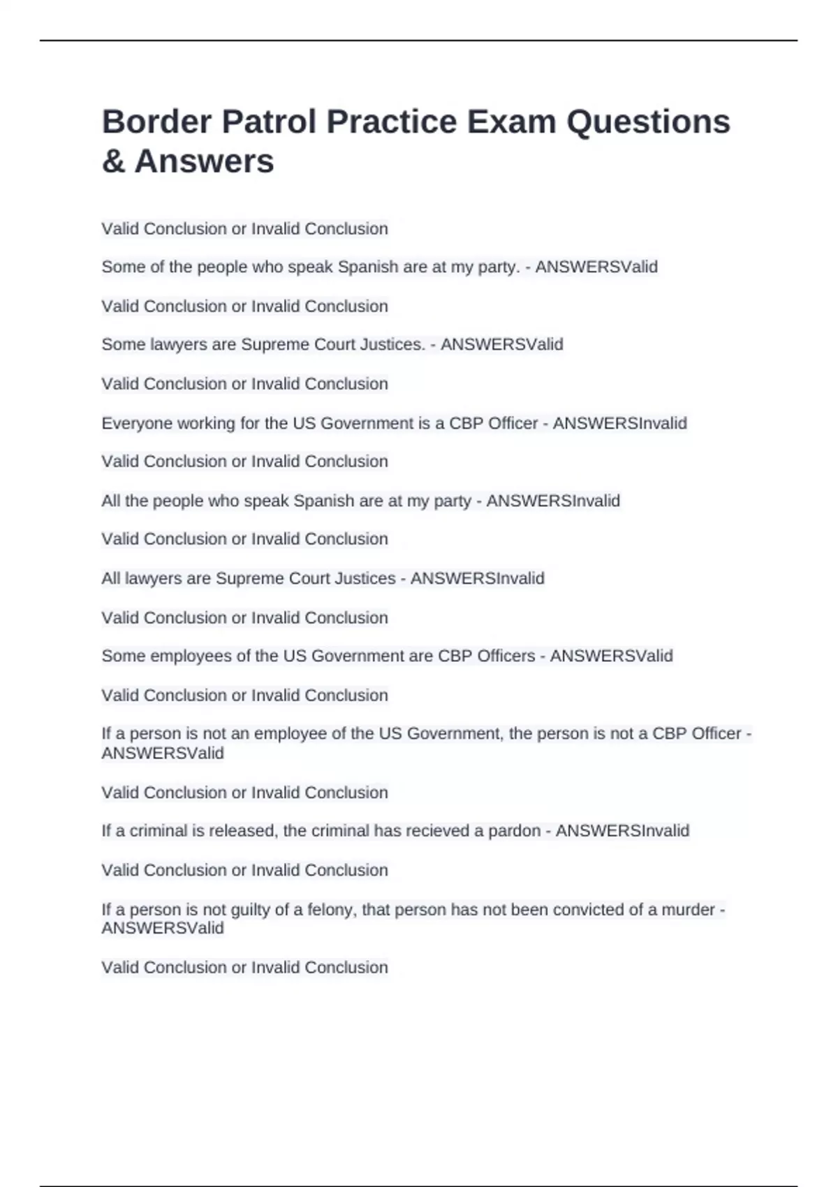Border Patrol Practice Exam Questions & Answers