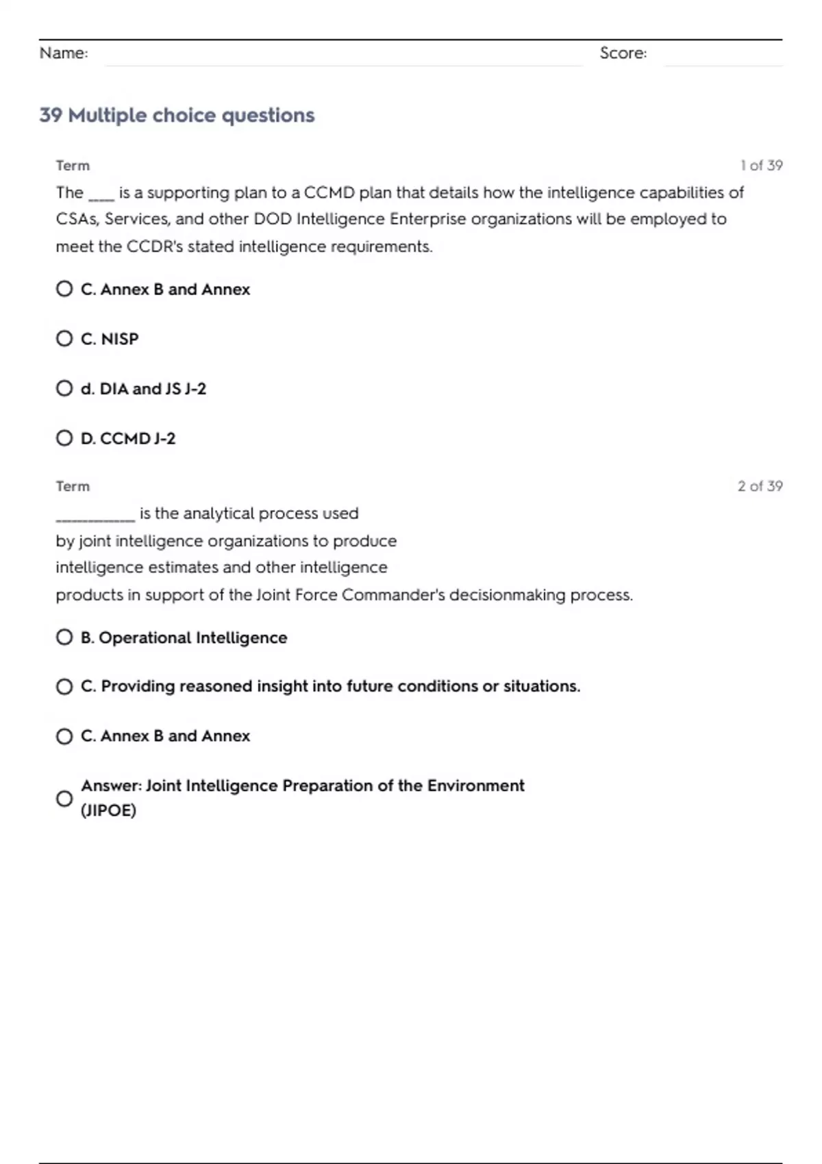 Answer: Joint Intelligence Preparation of the Environment