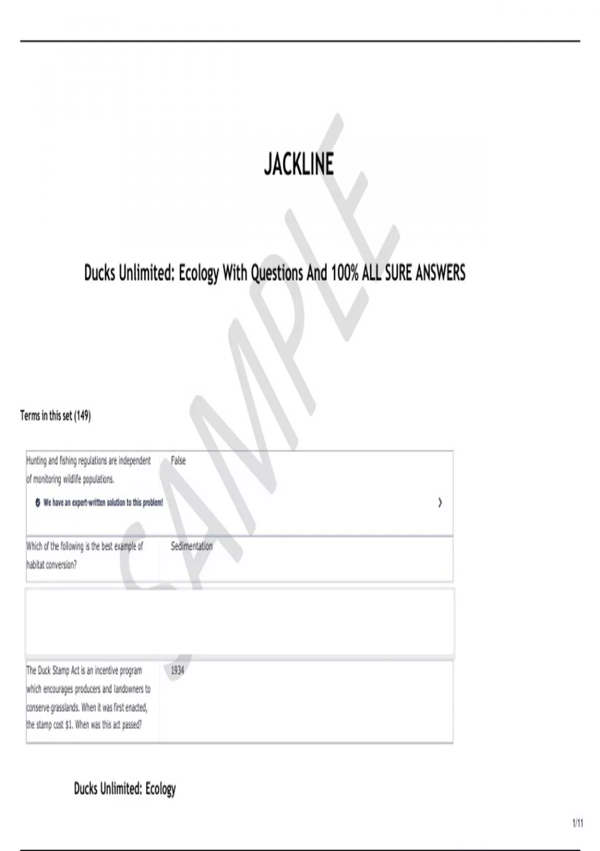 Ducks Unlimited: Ecology With Questions And 100% ALL SURE ANSWERS