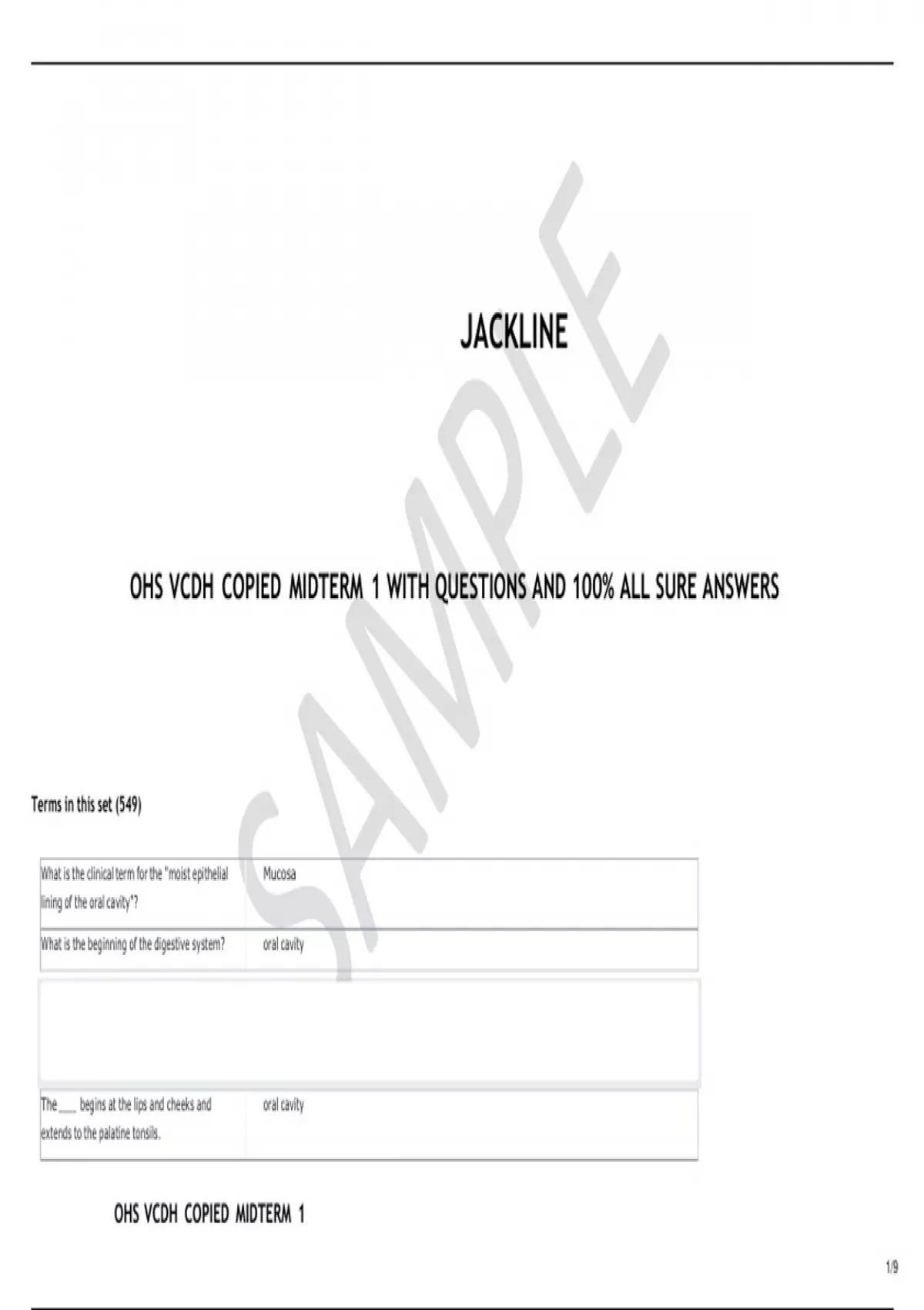 OHS VCDH COPIED MIDTERM 1 WITH QUESTIONS AND 100% ALL SURE ANSWERS