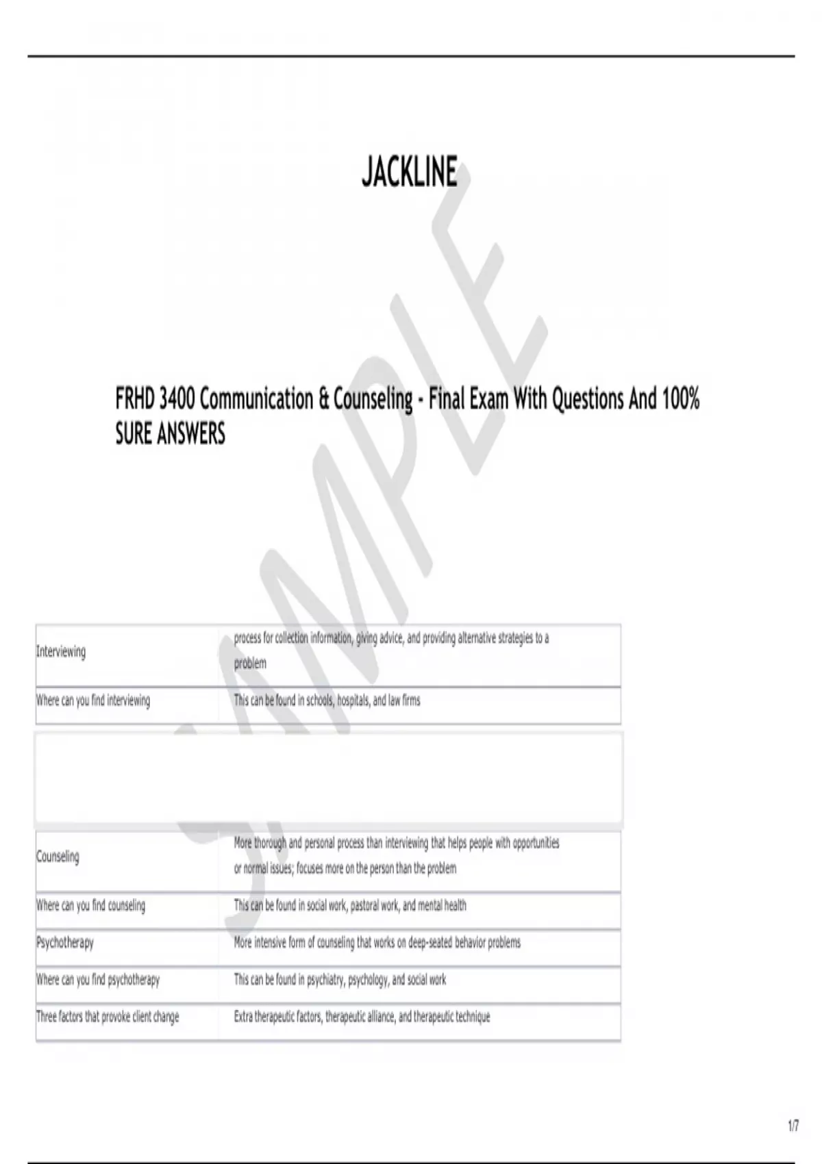 FRHD 3400 Communication & Counseling - Final Exam With Questions And 100%