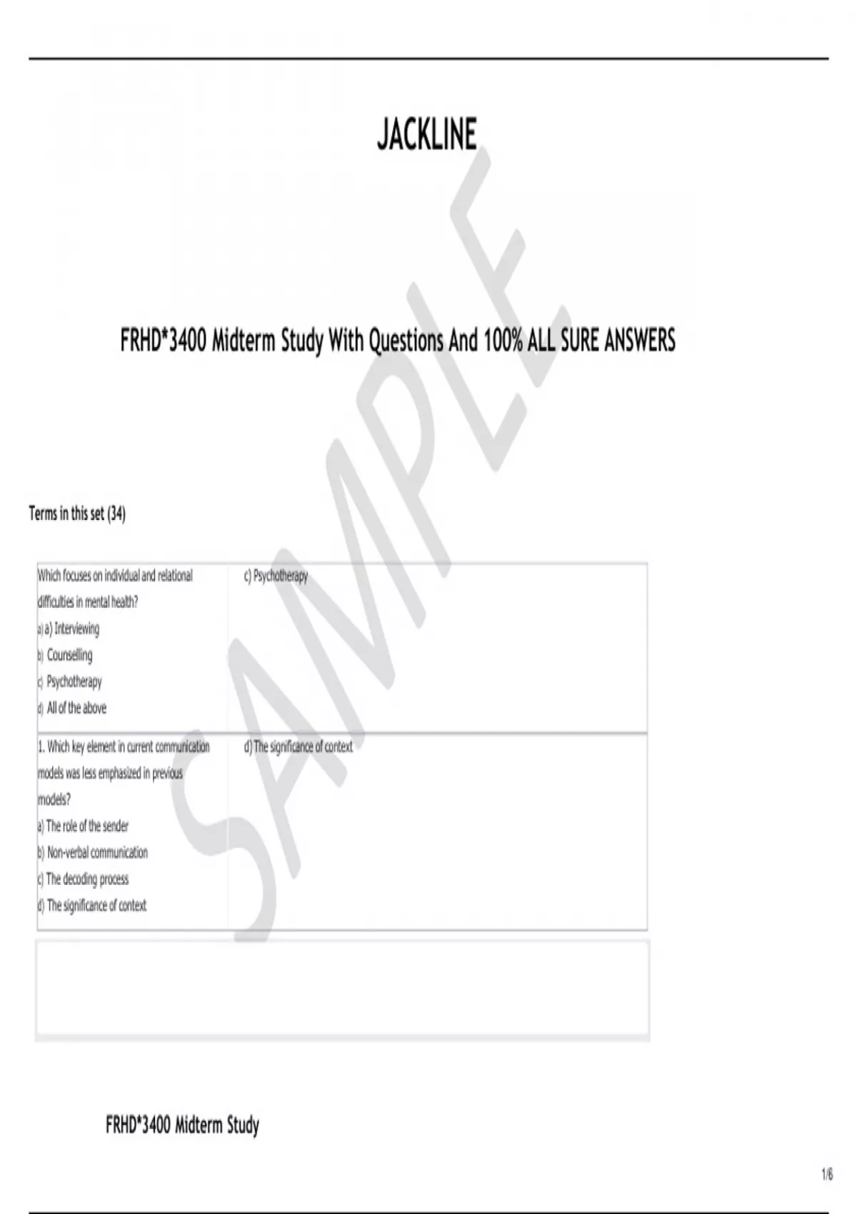 FRHD*3400 Midterm Study With Questions And 100% ALL SURE ANSWERS