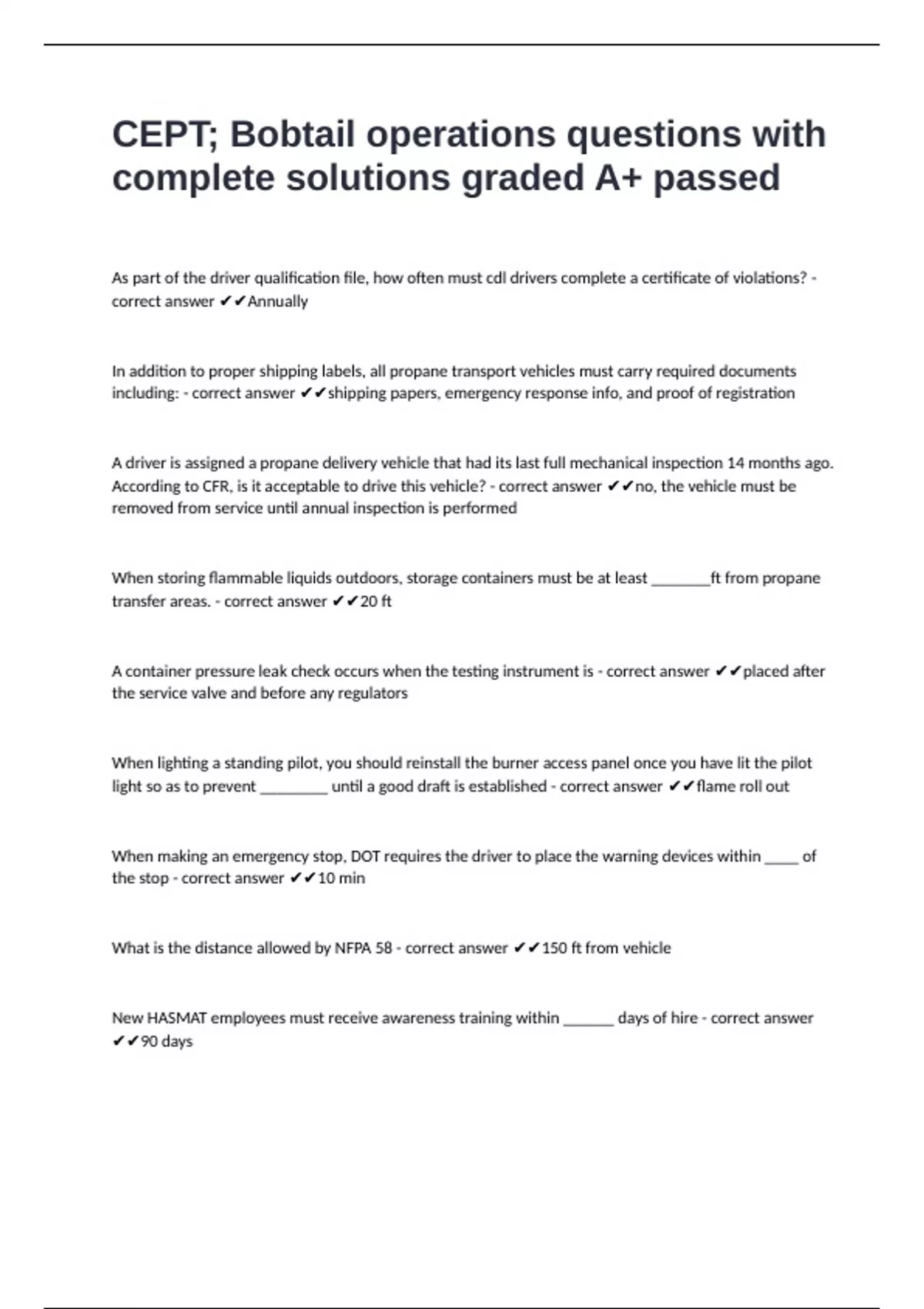 What is the distance allowed by NFPA 58 - correct answer ✔✔150 ft from vehicle