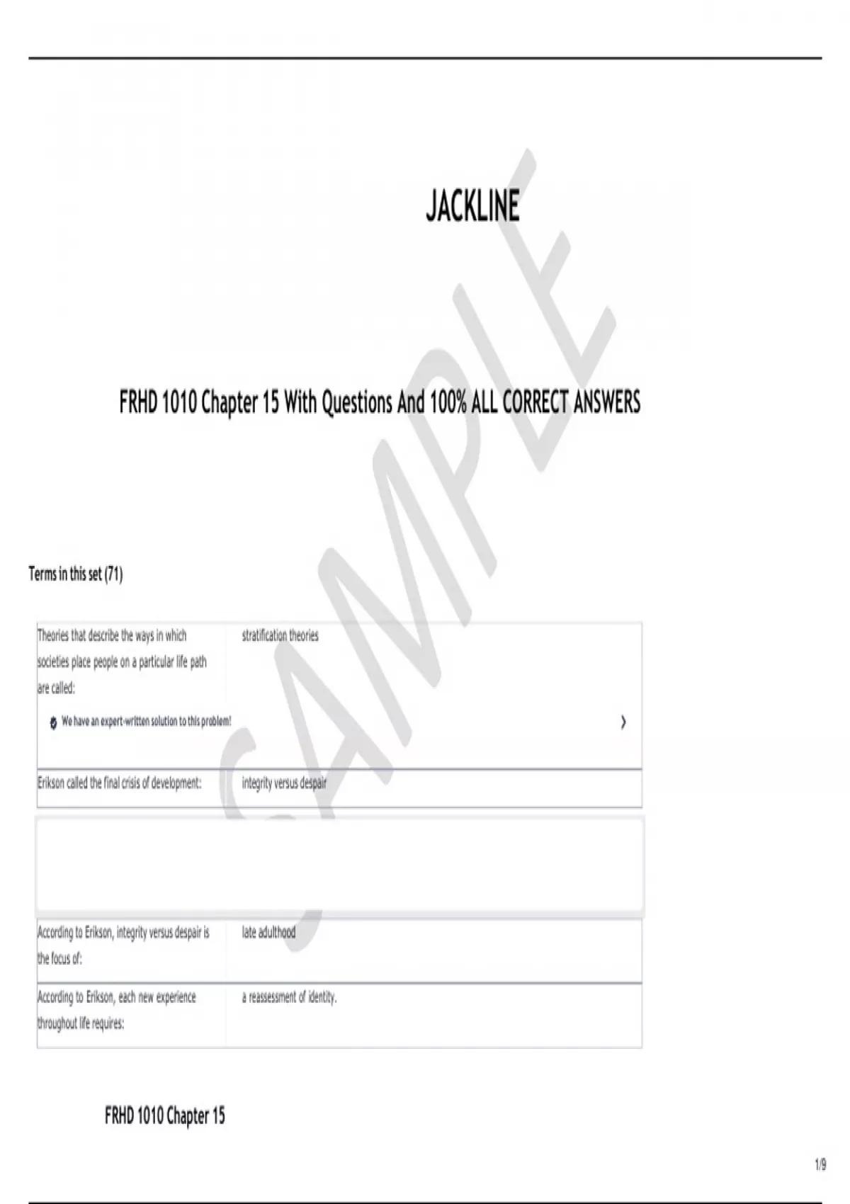 FRHD 1010 Chapter 15 With Questions And 100% ALL CORRECT ANSWERS