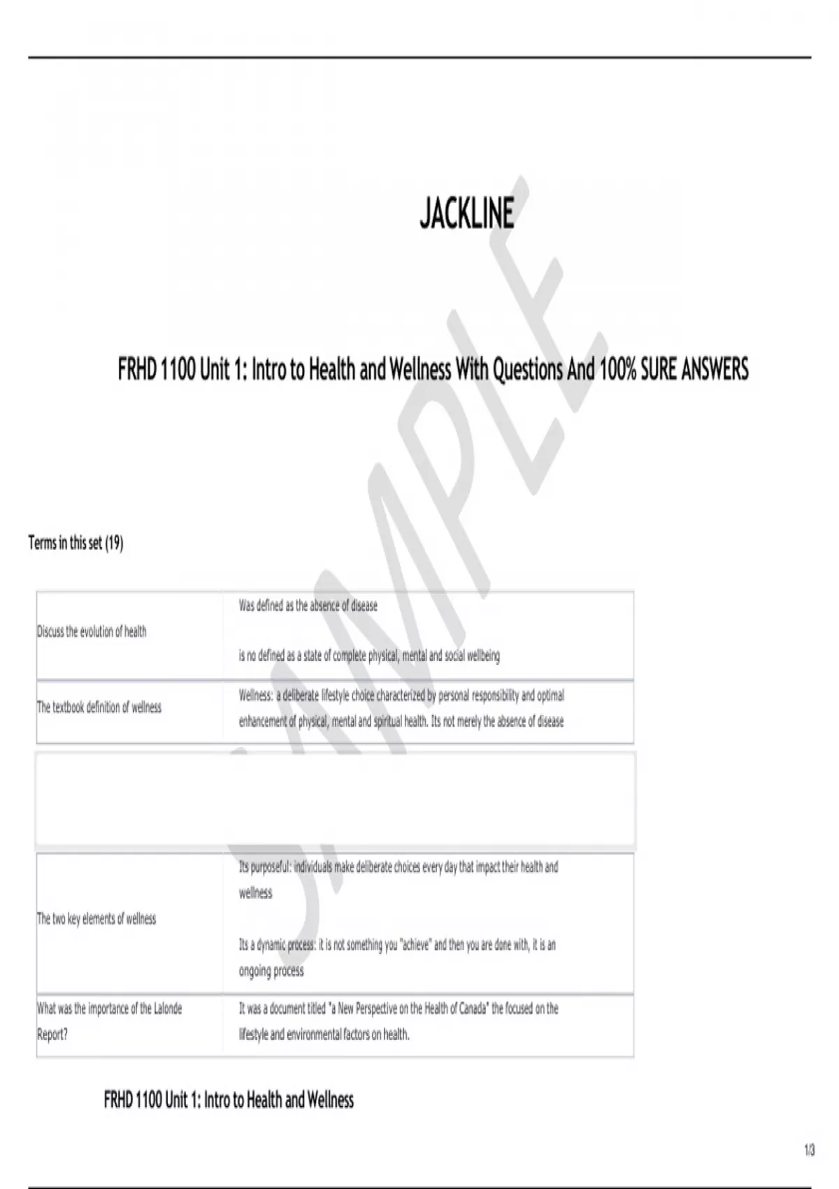 FRHD 1100 Unit 1: Intro to Health and Wellness With Questions And 100% SURE ANSWERS