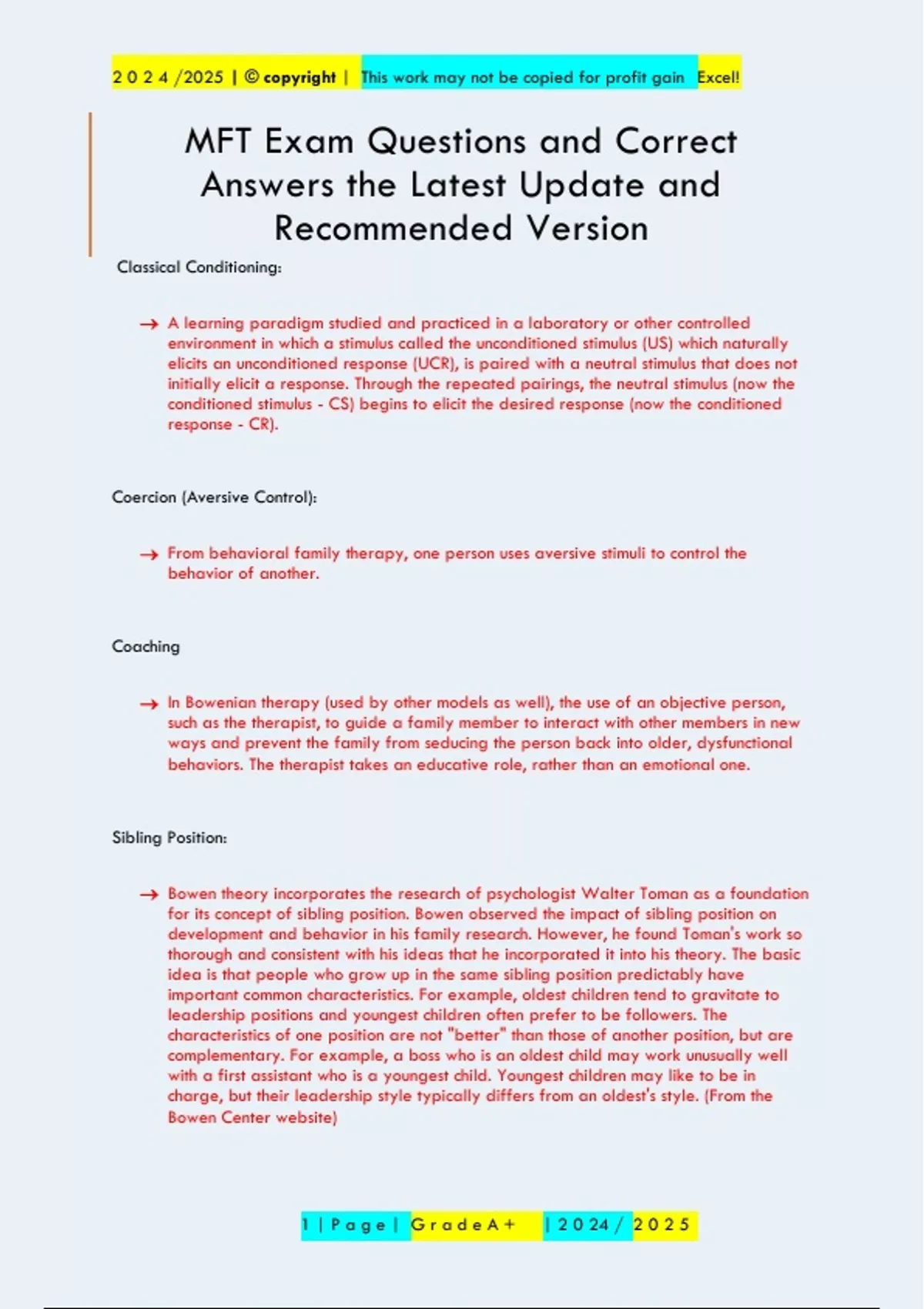 MFT Exam Questions and Correct