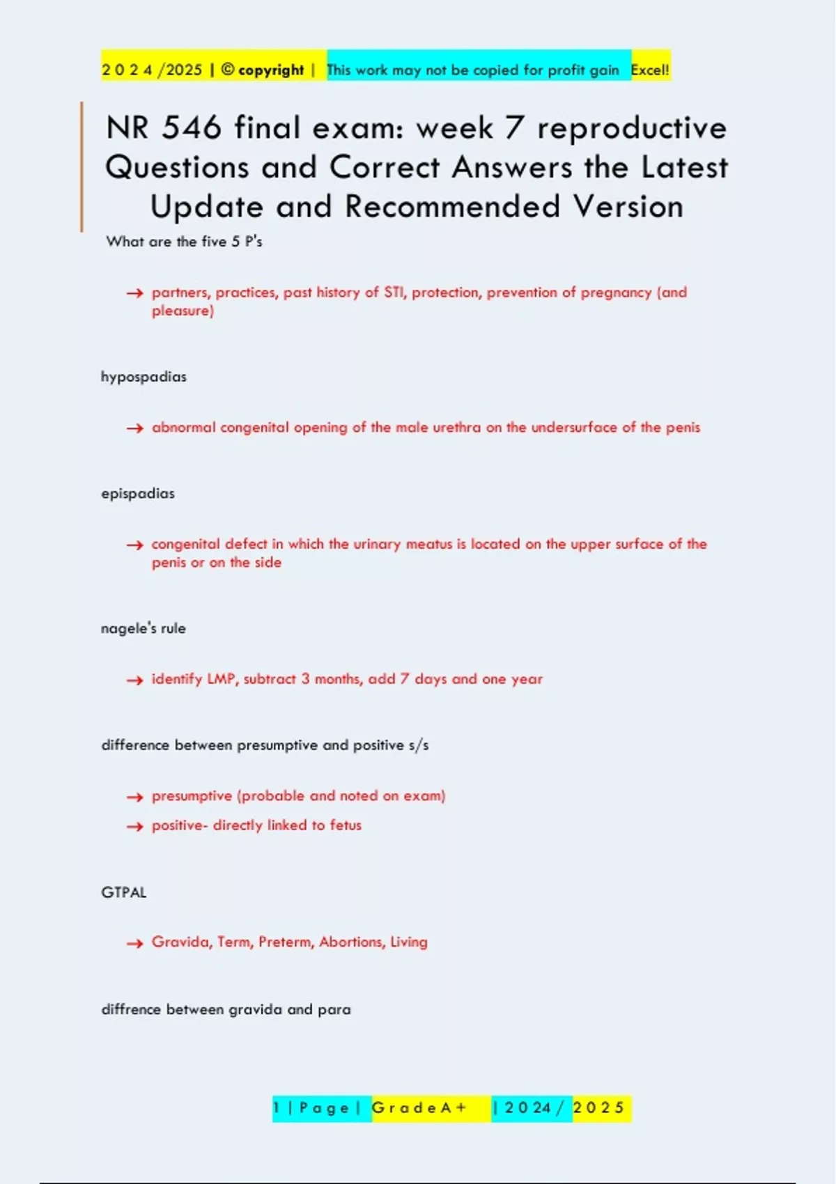 ,2 0 2 4 /2025 | © copyright | This work may not be copied for profit gain Excel!