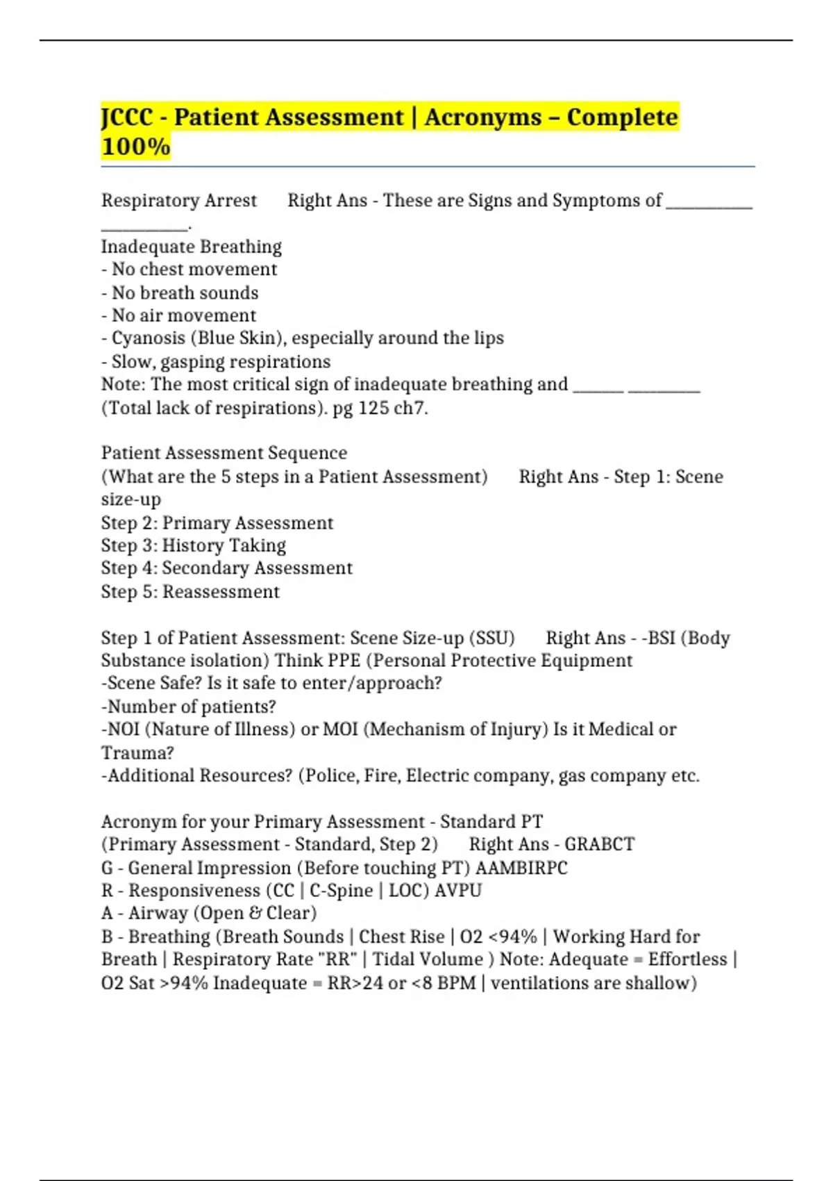 (Primary Assessment - Standard, Step 2) Right Ans - GRABCT