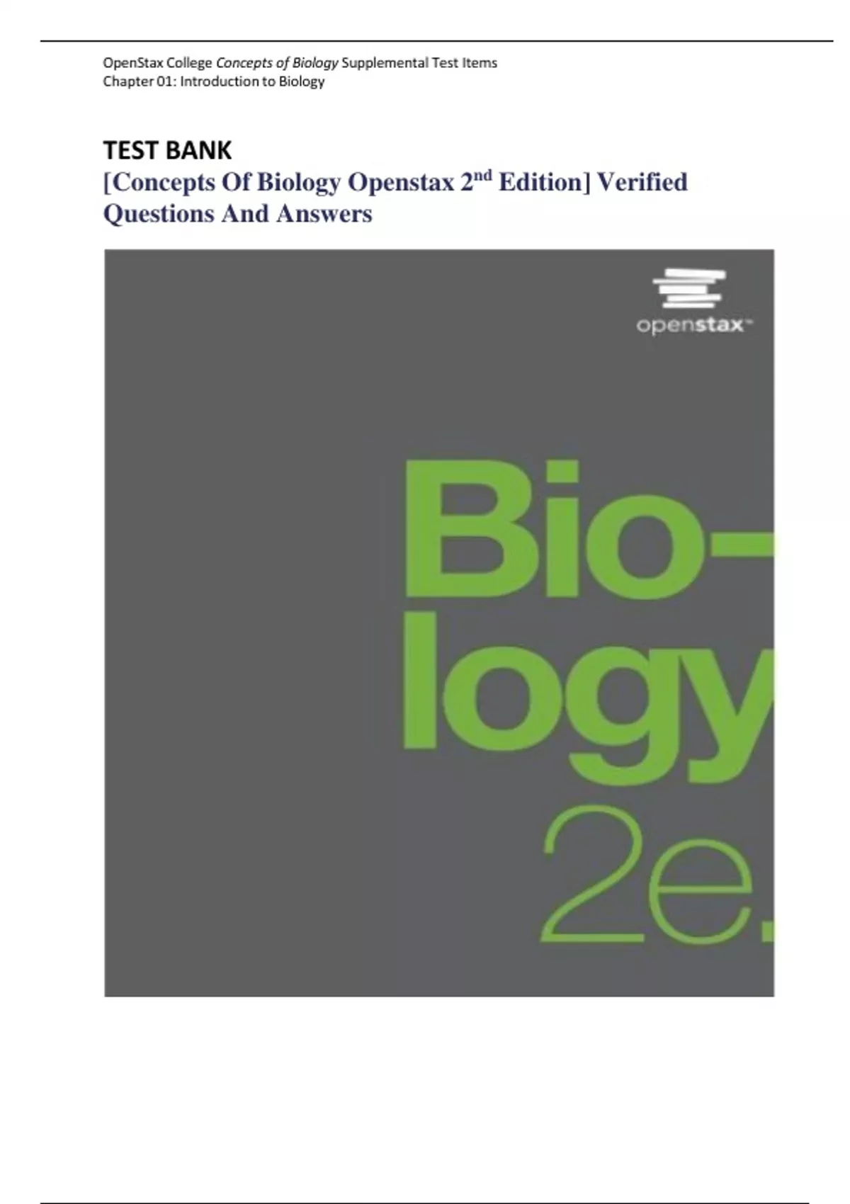 TEST BANK Concepts Of Biology Openstax 2nd Edition|| ALL COVERD