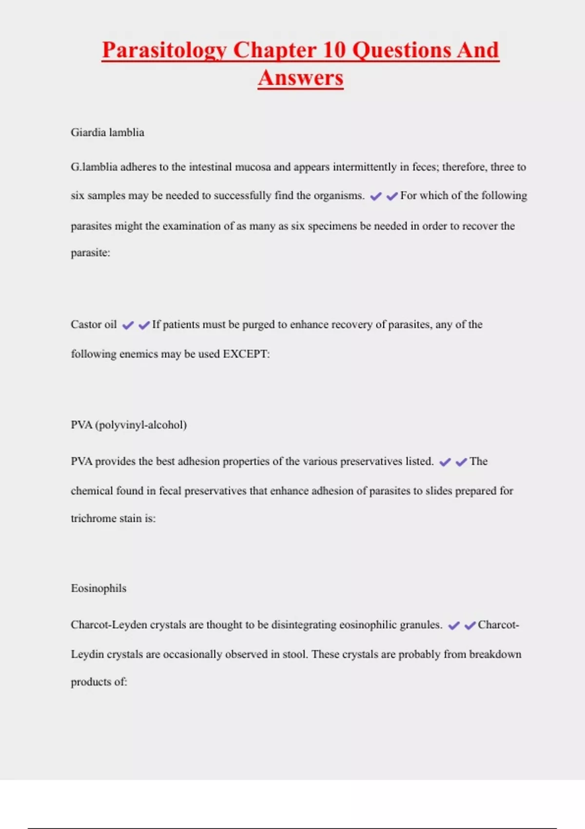 , Parasitology Chapter 10 Questions And