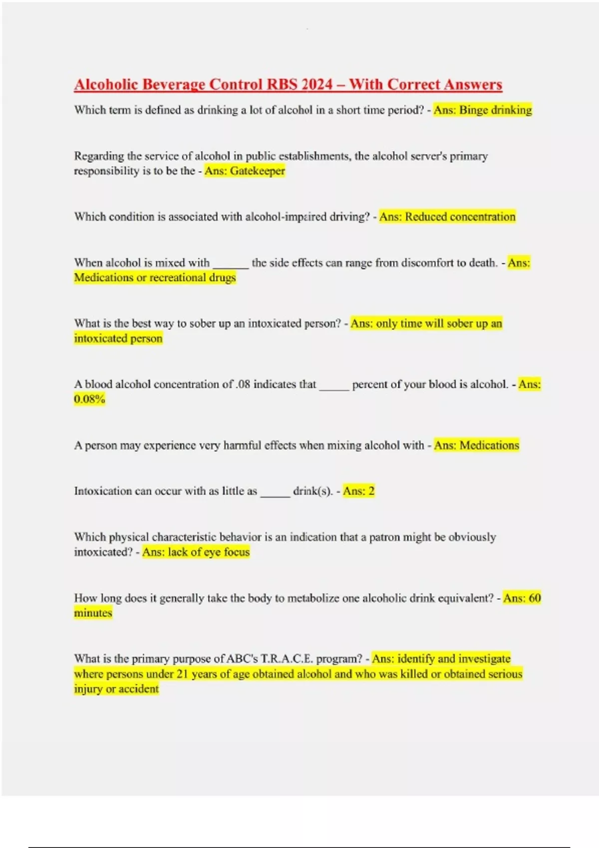 (Answered) Alcoholic Beverage Control RBS 2024 With Correct Solutions