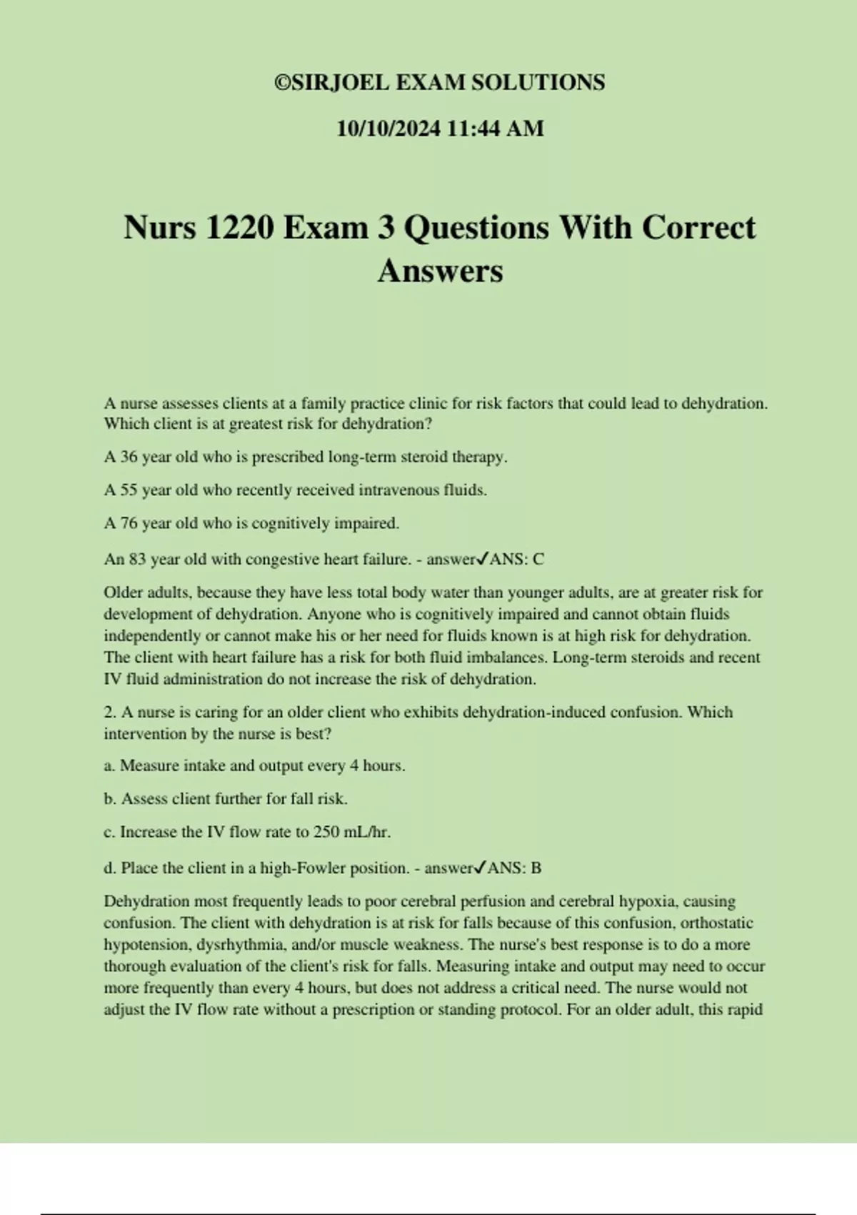 2. A nurse is caring for an older client who exhibits dehydration-induced confusion. Which