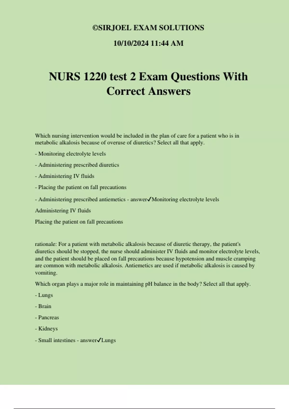NURS 1220 test 2 Exam Questions With