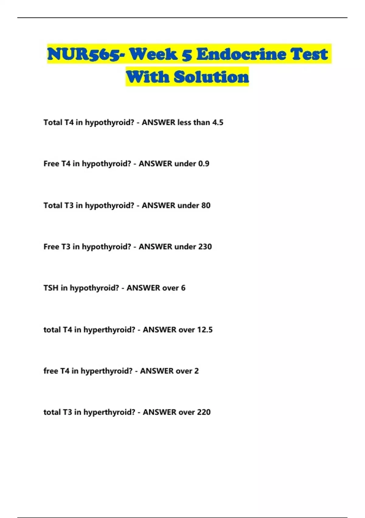 Normal thyroid values - ANSWER Total T4: 4.5-12.5