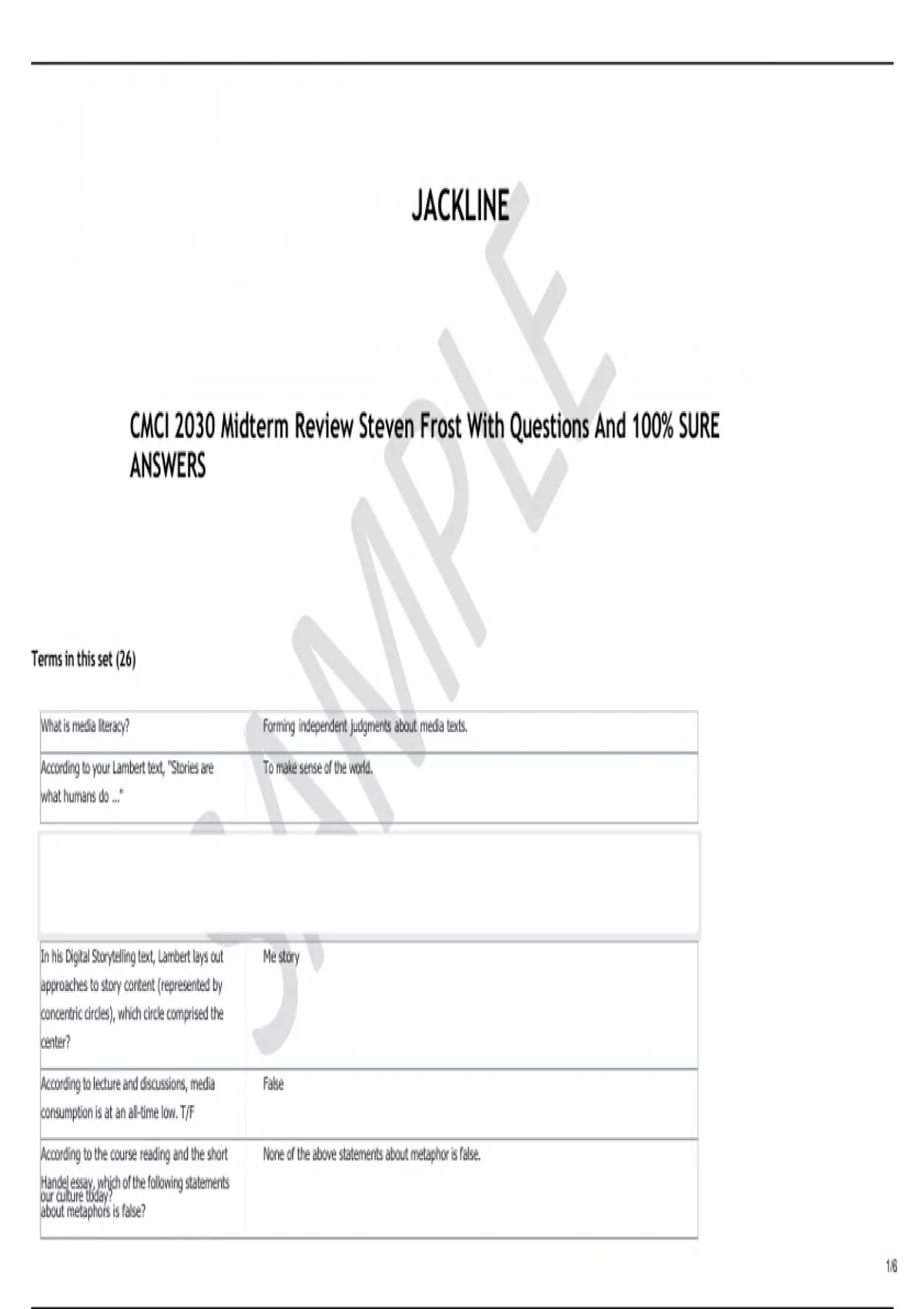 CMCI 2030 Midterm Review Steven Frost With Questions And 100% SURE