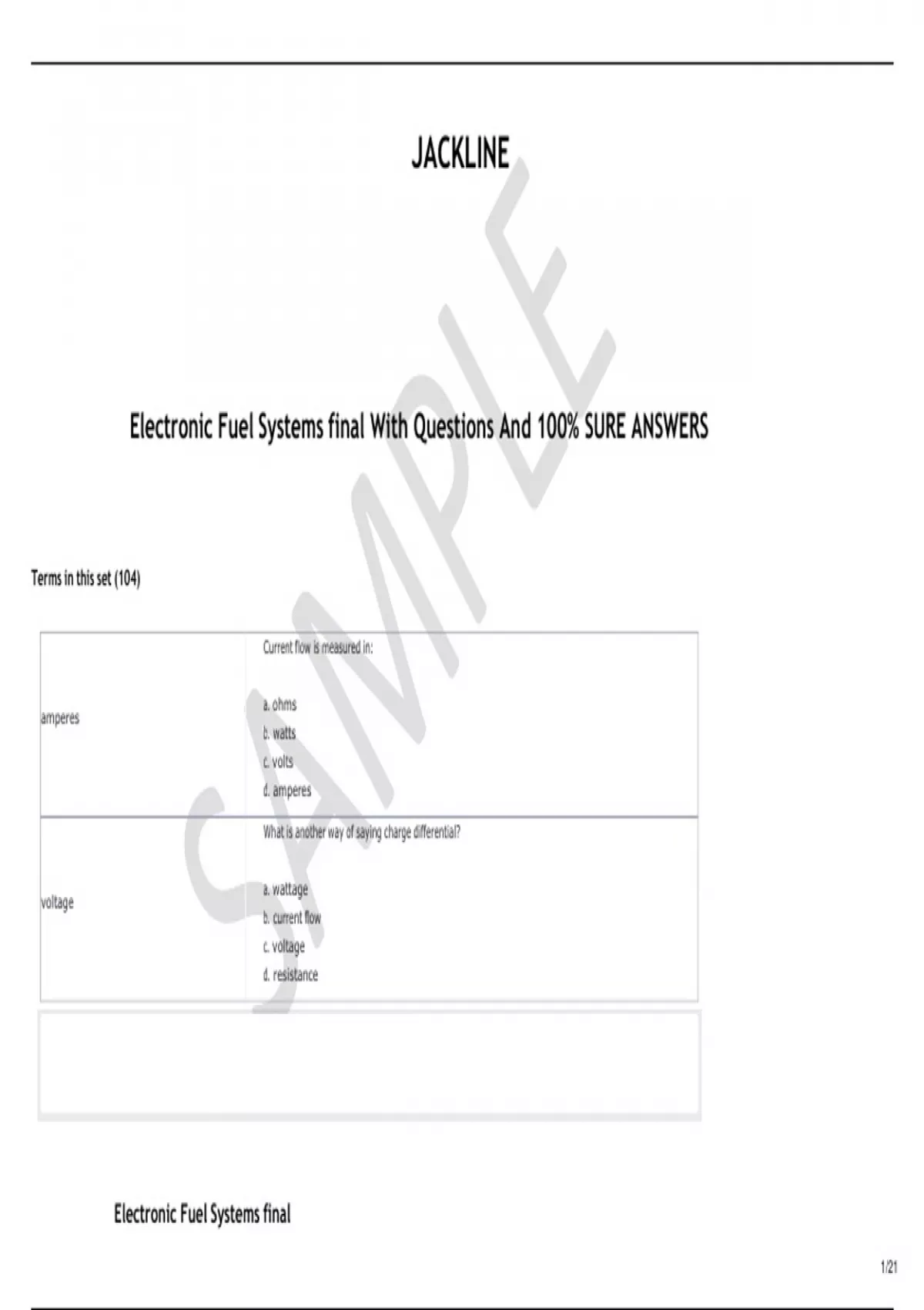 Electronic Fuel Systems final With Questions And 100% SURE ANSWERS
