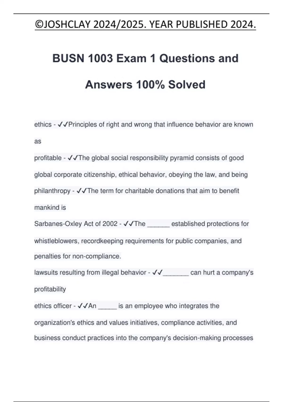 BUSN 1003 Exam 1 Questions and