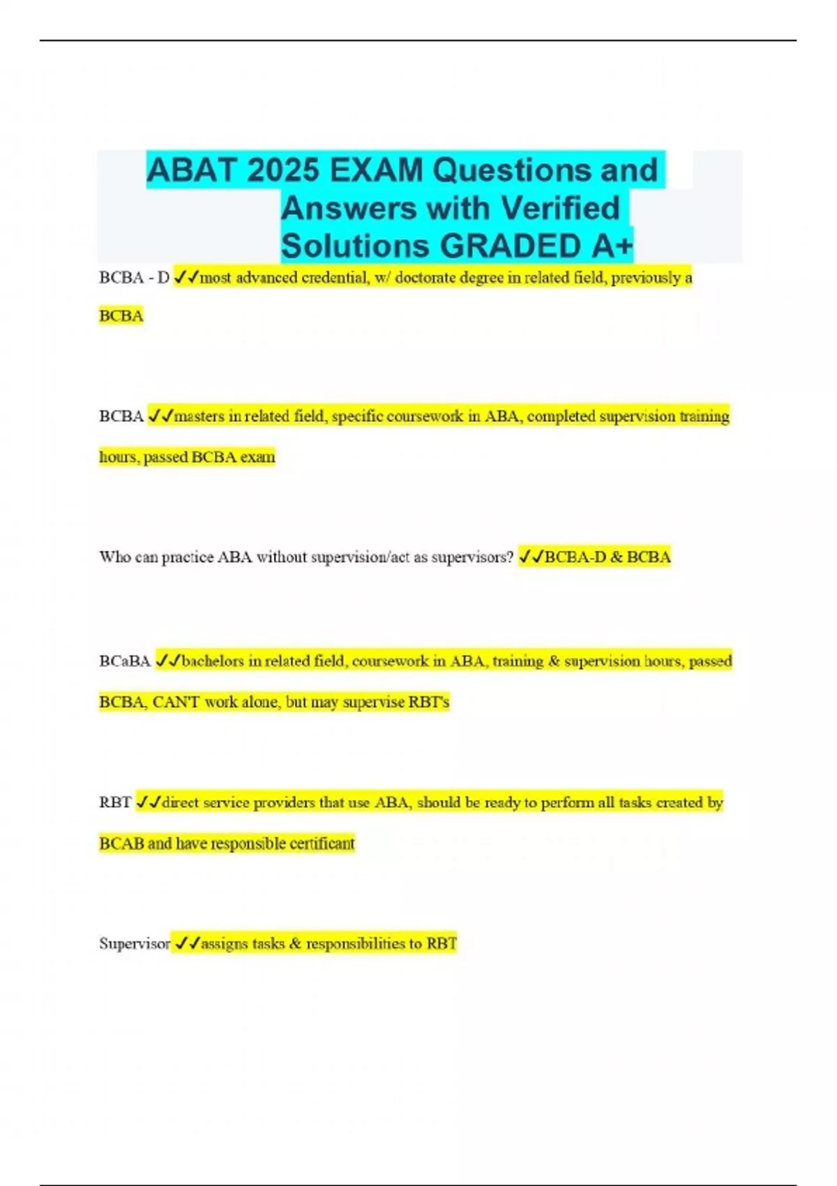 ABAT 2025 EXAM Questions and Answers with Verified Solutions GRADED A+