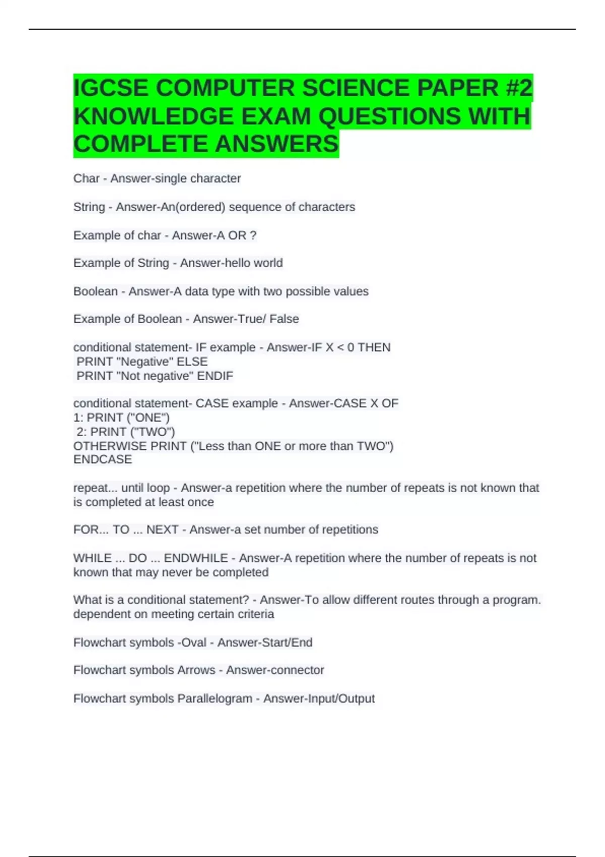 IGCSE COMPUTER SCIENCE PAPER #2