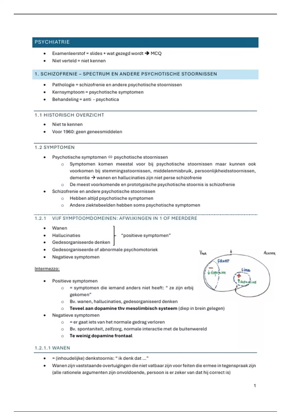 1. SCHIZOFRENIE – SPECTRUM EN ANDERE PSYCHOTISCHE STOORNISSEN