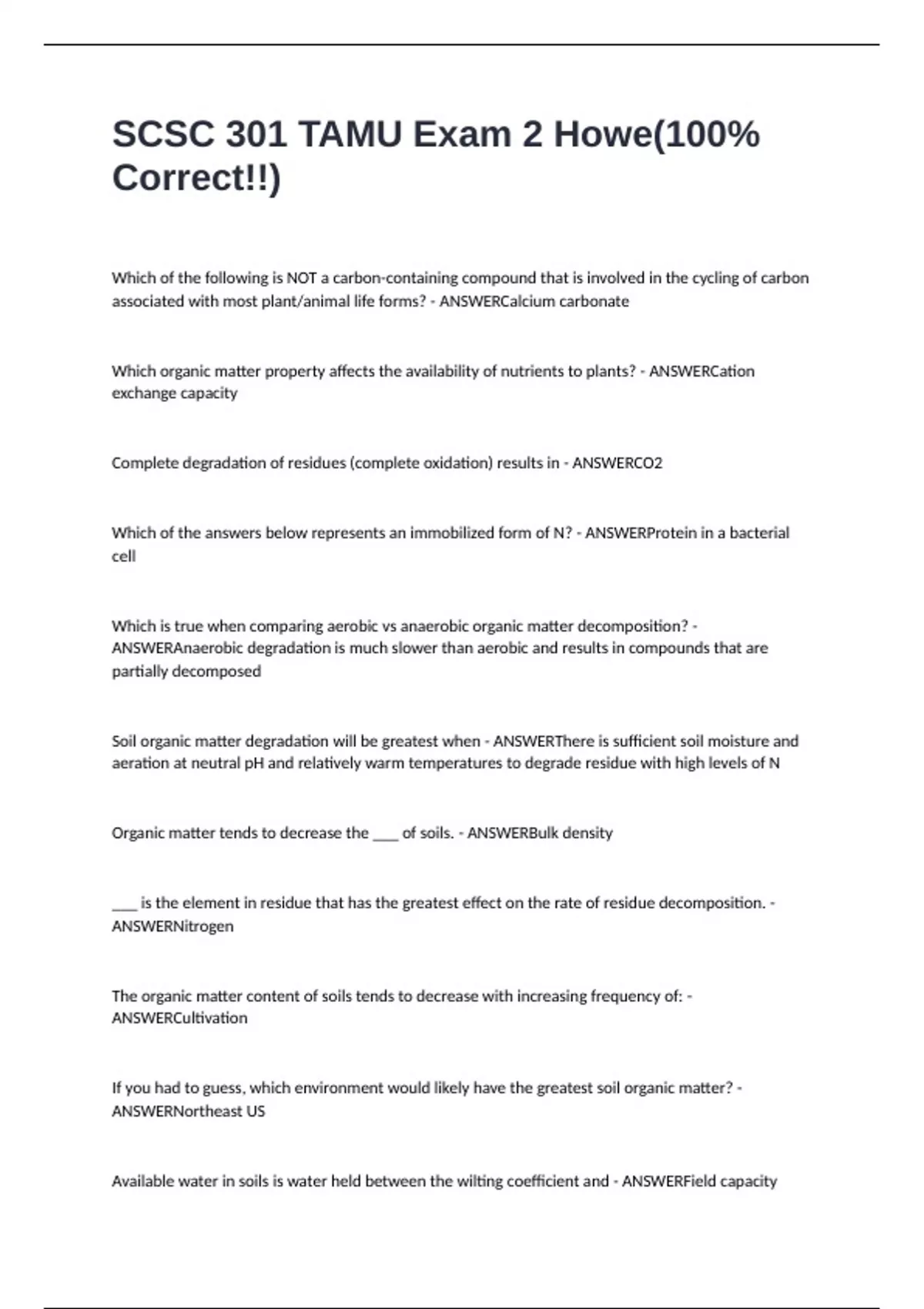 Soil organic matter degradation will be greatest when - ANSWERThere is sufficient soil moisture and