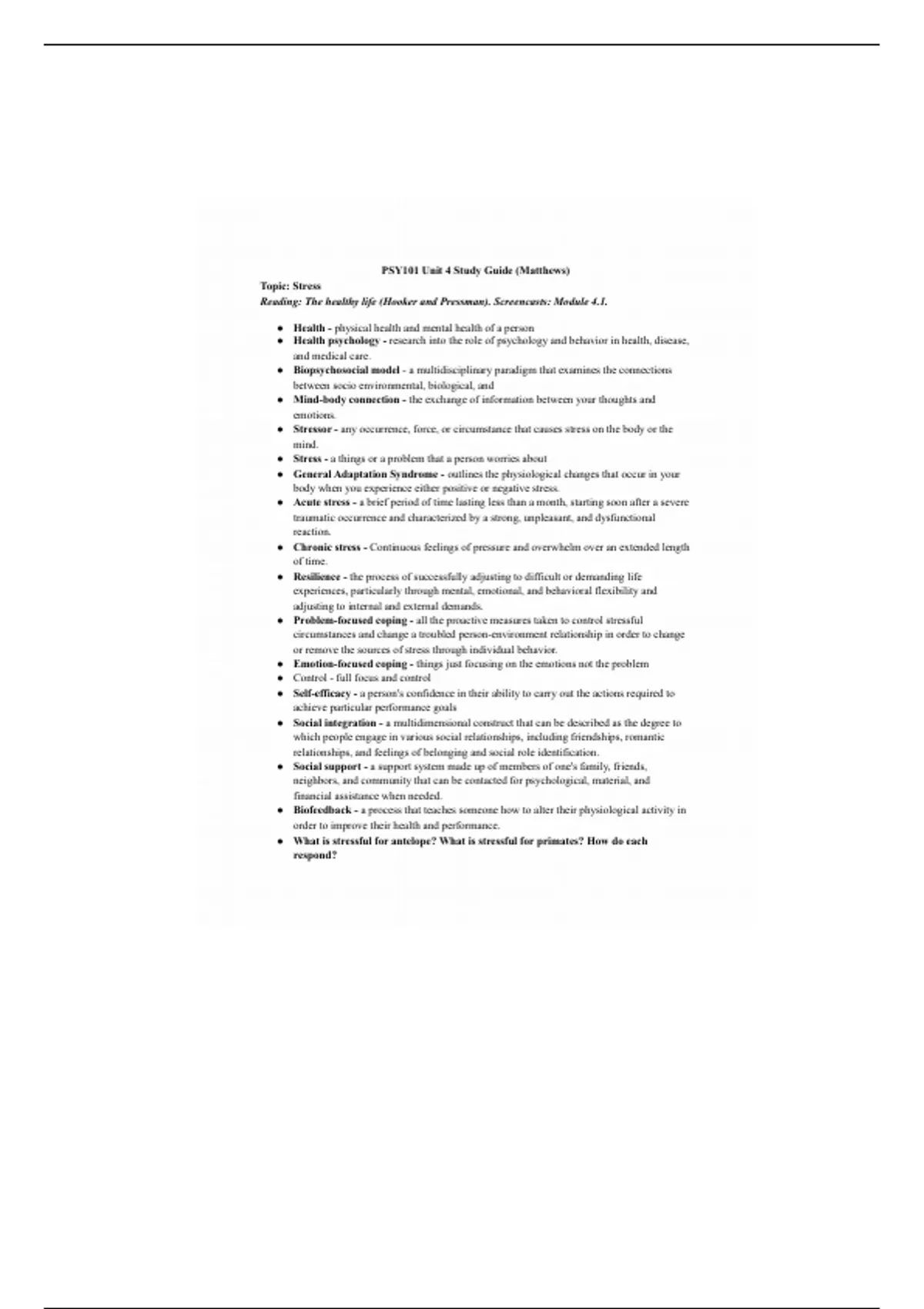 This is a comprehensive and detailed Summary/study guide on Unit 4 for Psy 101. *Essential!!