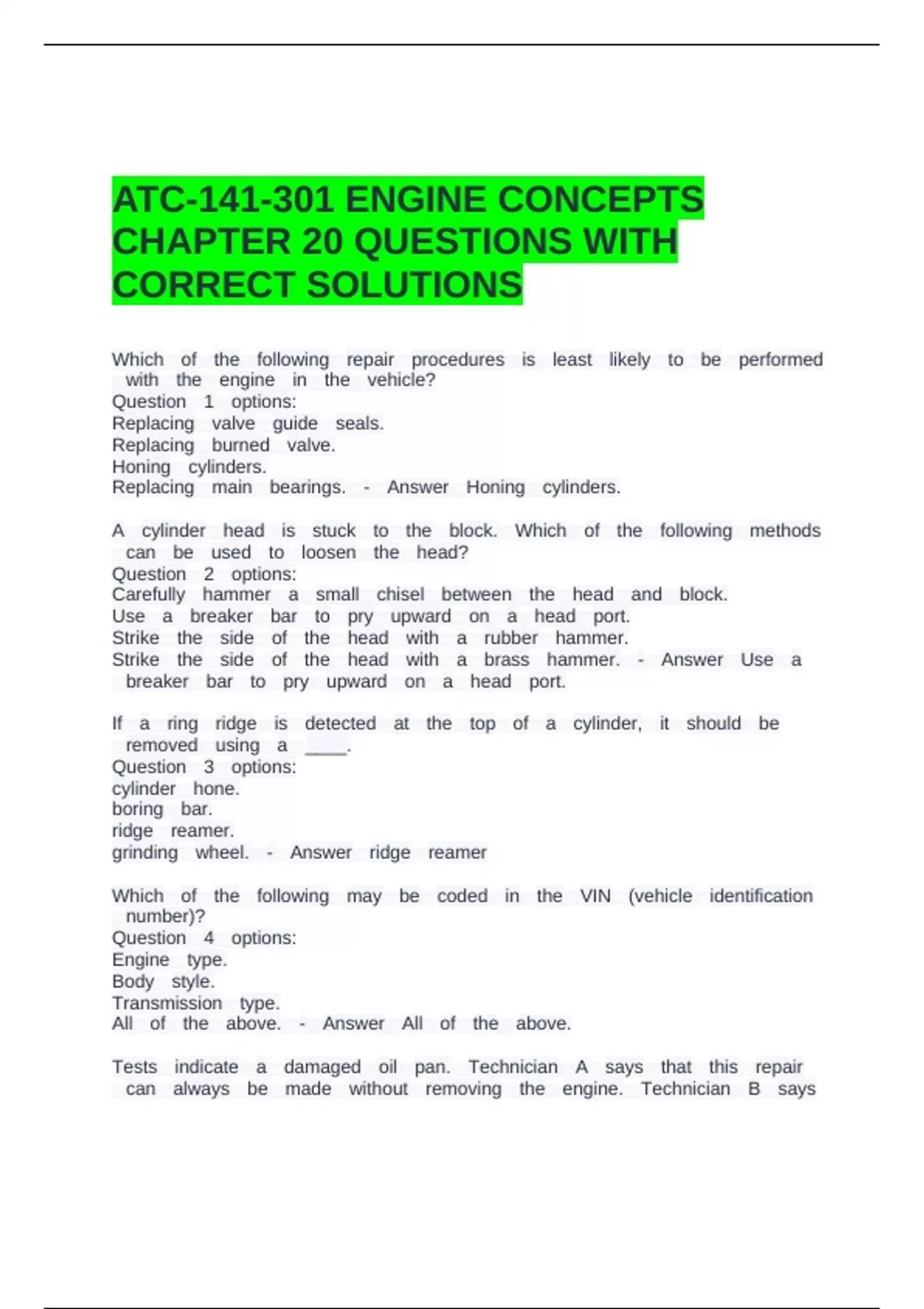 Replacing eemain eebearings. ee- eeAnswer eeHoning eecylinders.