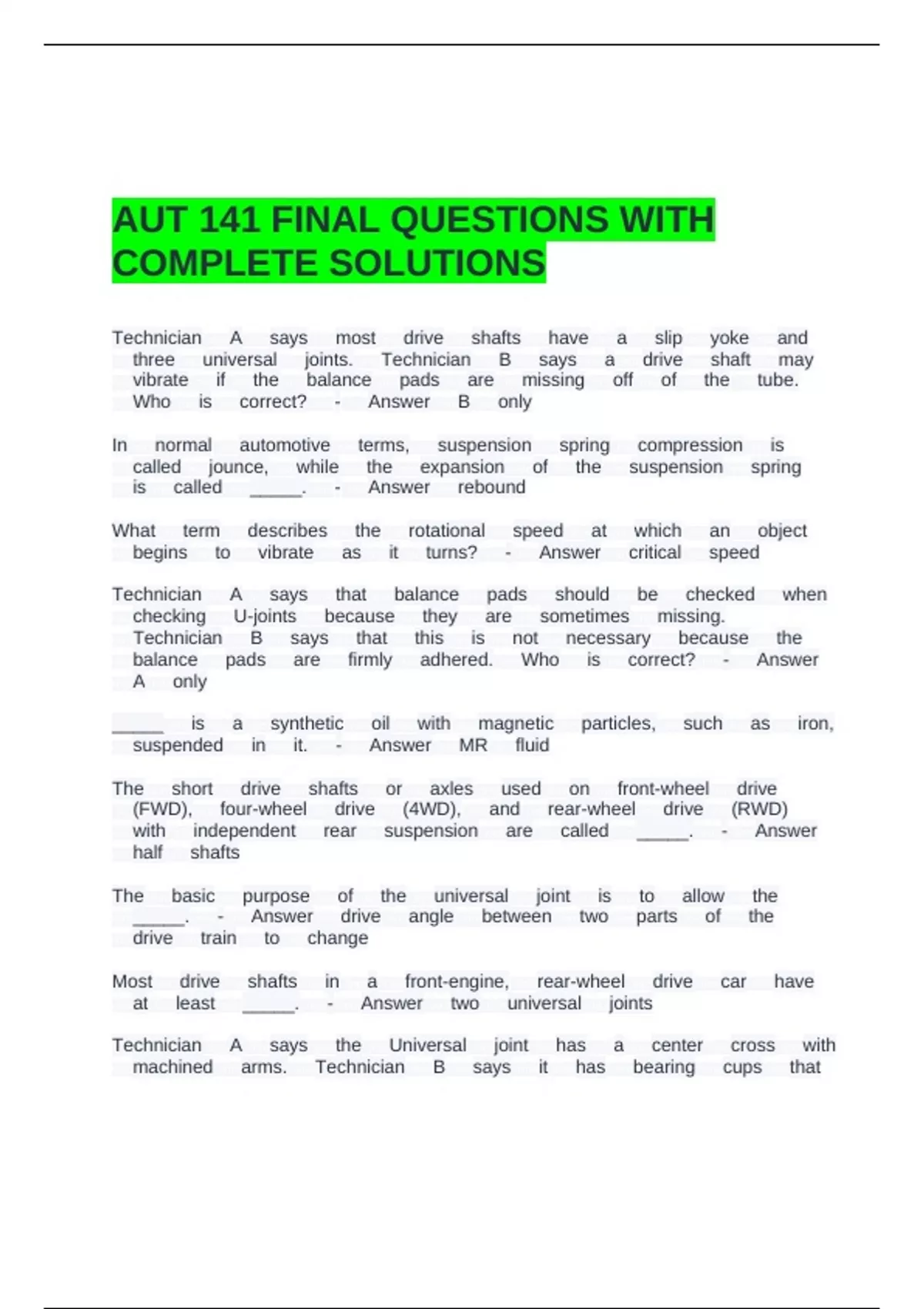 AUT 141 FINAL QUESTIONS WITH COMPLETE SOLUTIONS.