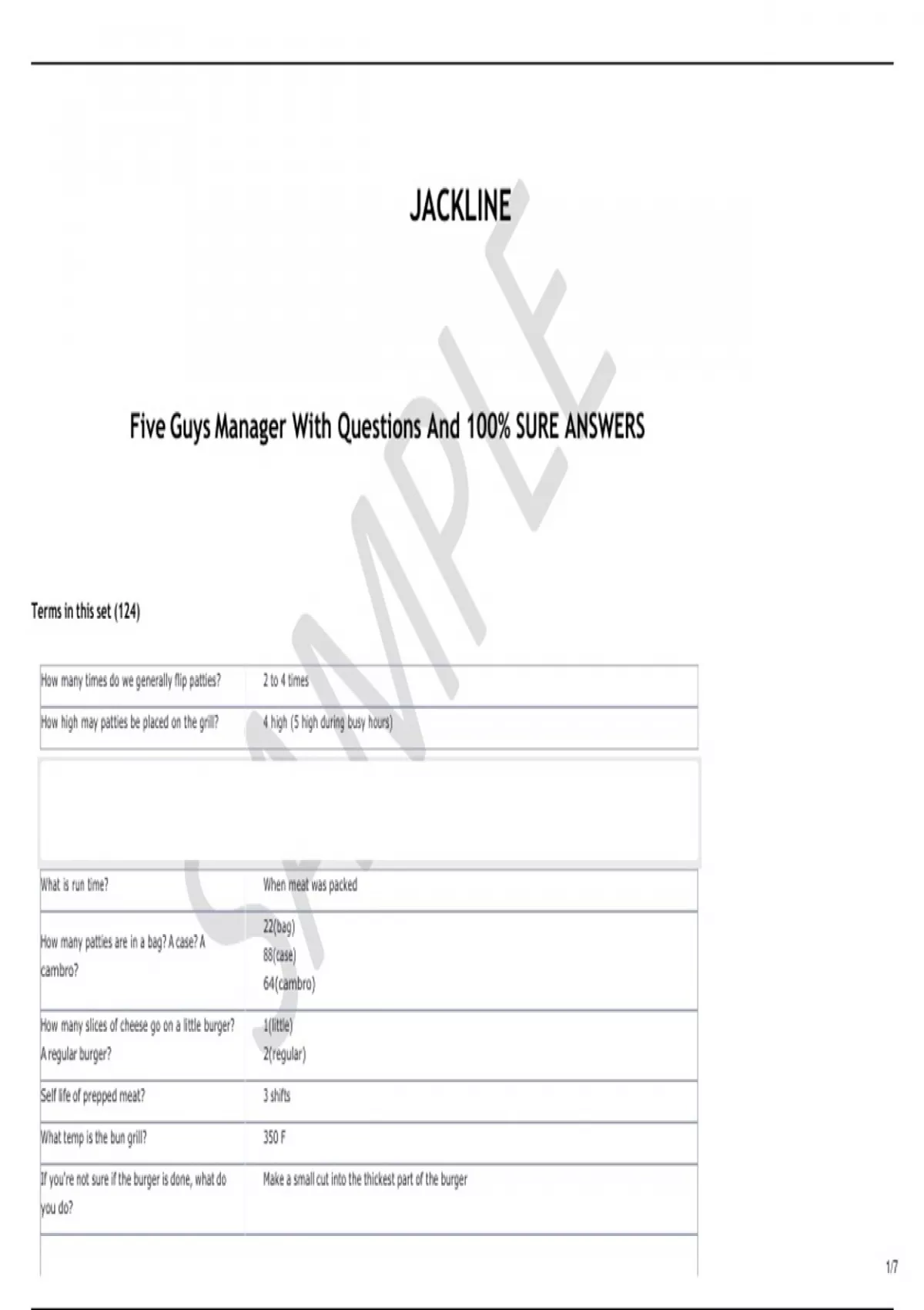 Five Guys Manager With Questions And 100% SURE ANSWERS