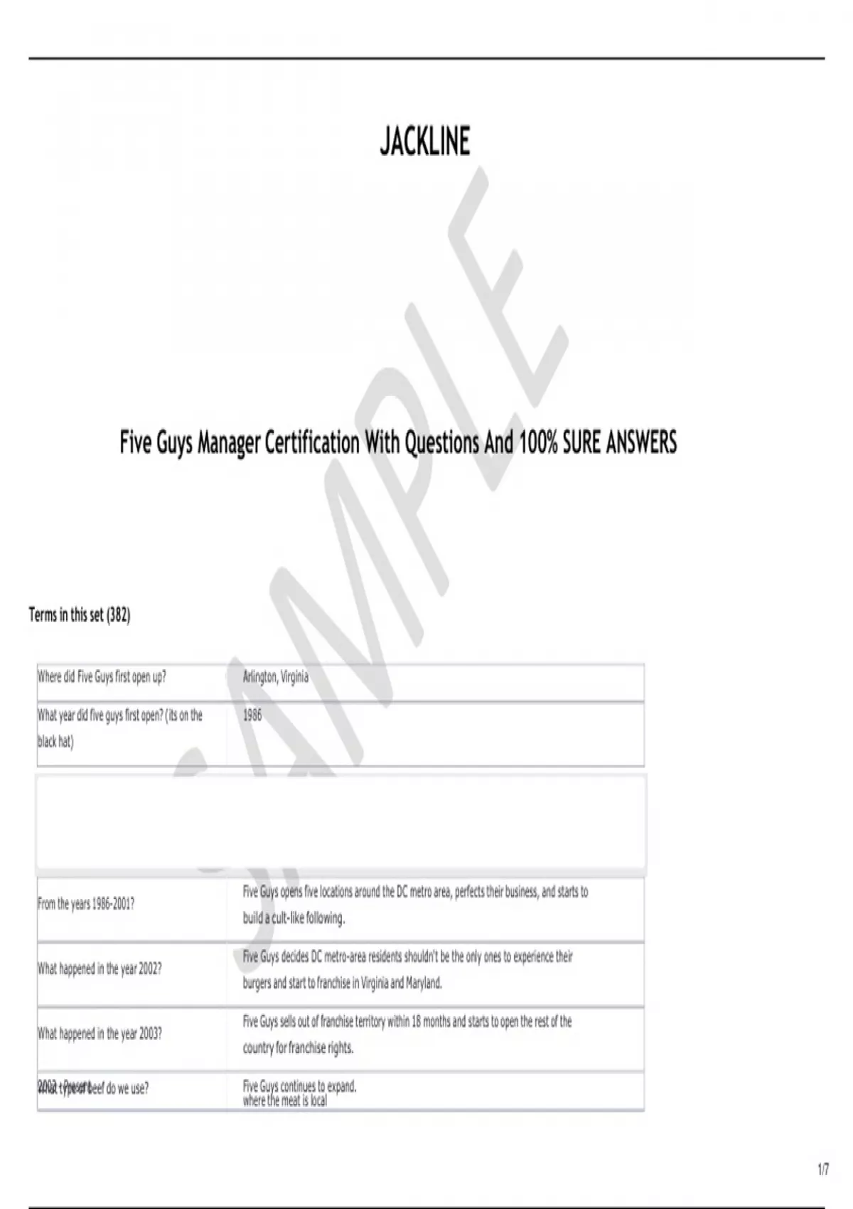 Five Guys Manager Certification With Questions And 100% SURE ANSWERS
