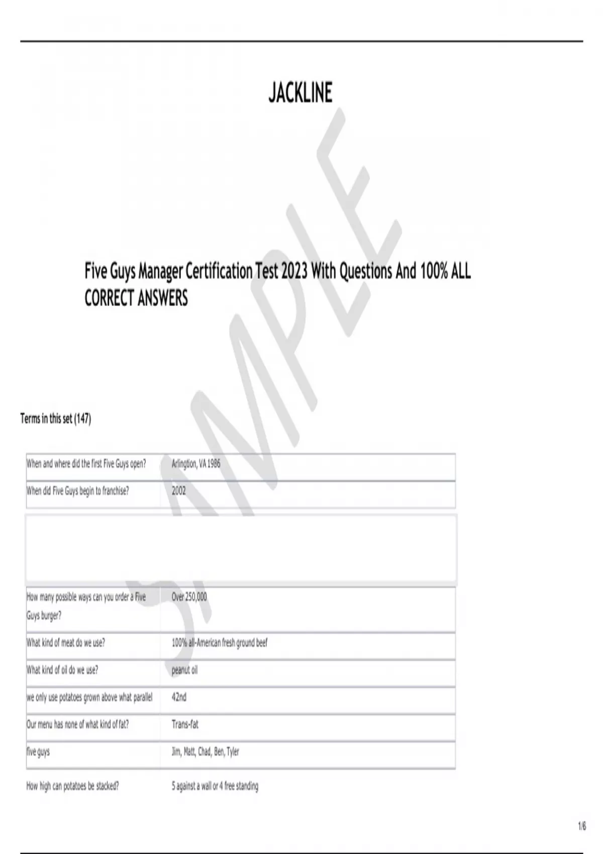 Five Guys Manager Certification Test 2023 With Questions And 100% ALL
