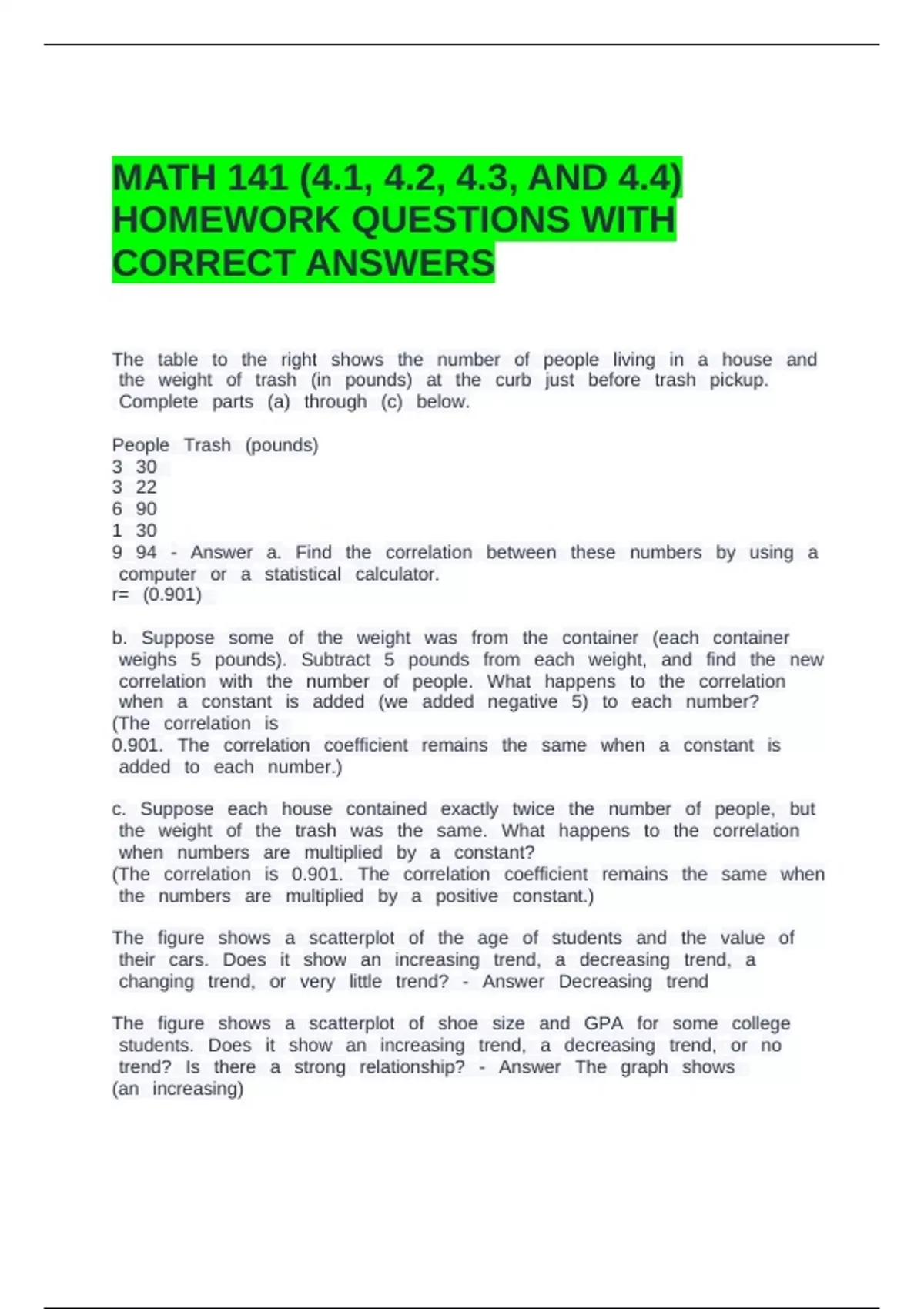 ffthe ffweight ffof ffthe fftrash ffwas ffthe ffsame. ffWhat ffhappens ffto ffthe ffcorrelation