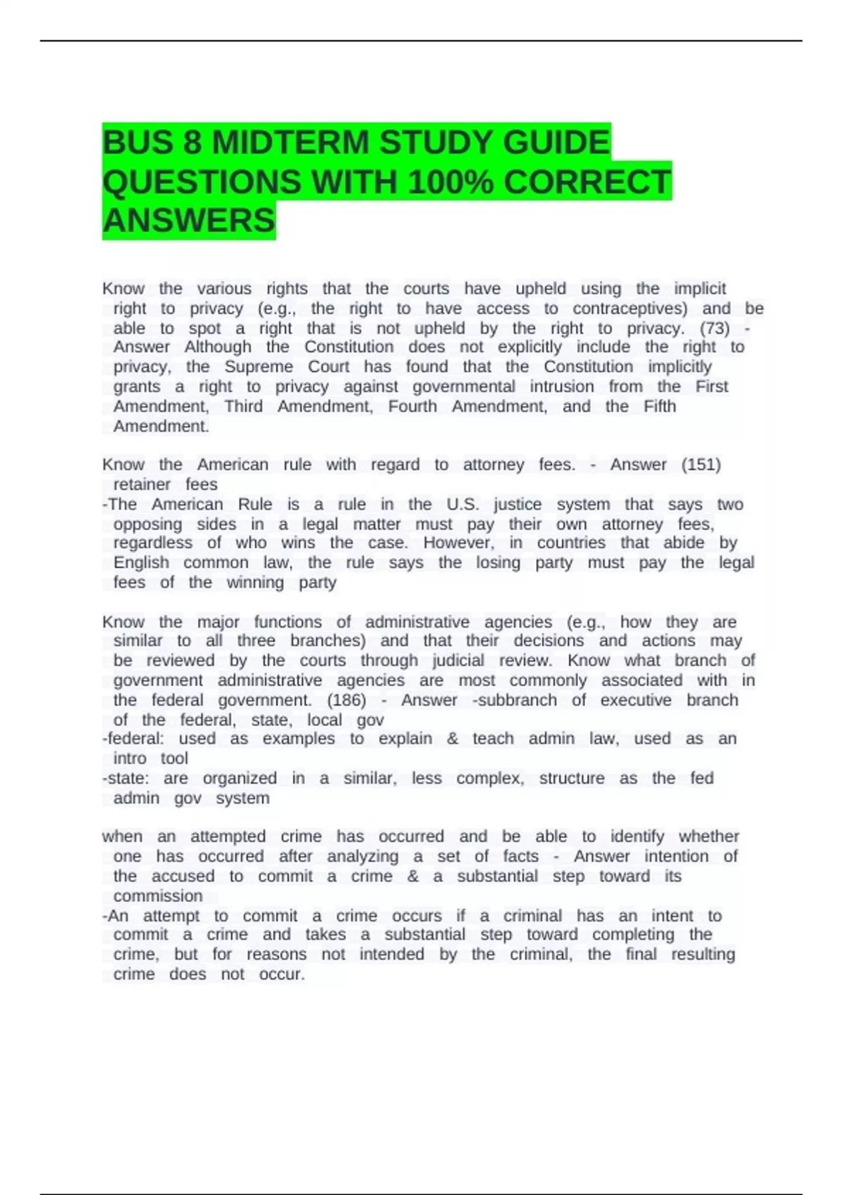 BUS 8 MIDTERM STUDY GUIDE QUESTIONS WITH 100% CORRECT ANSWERS