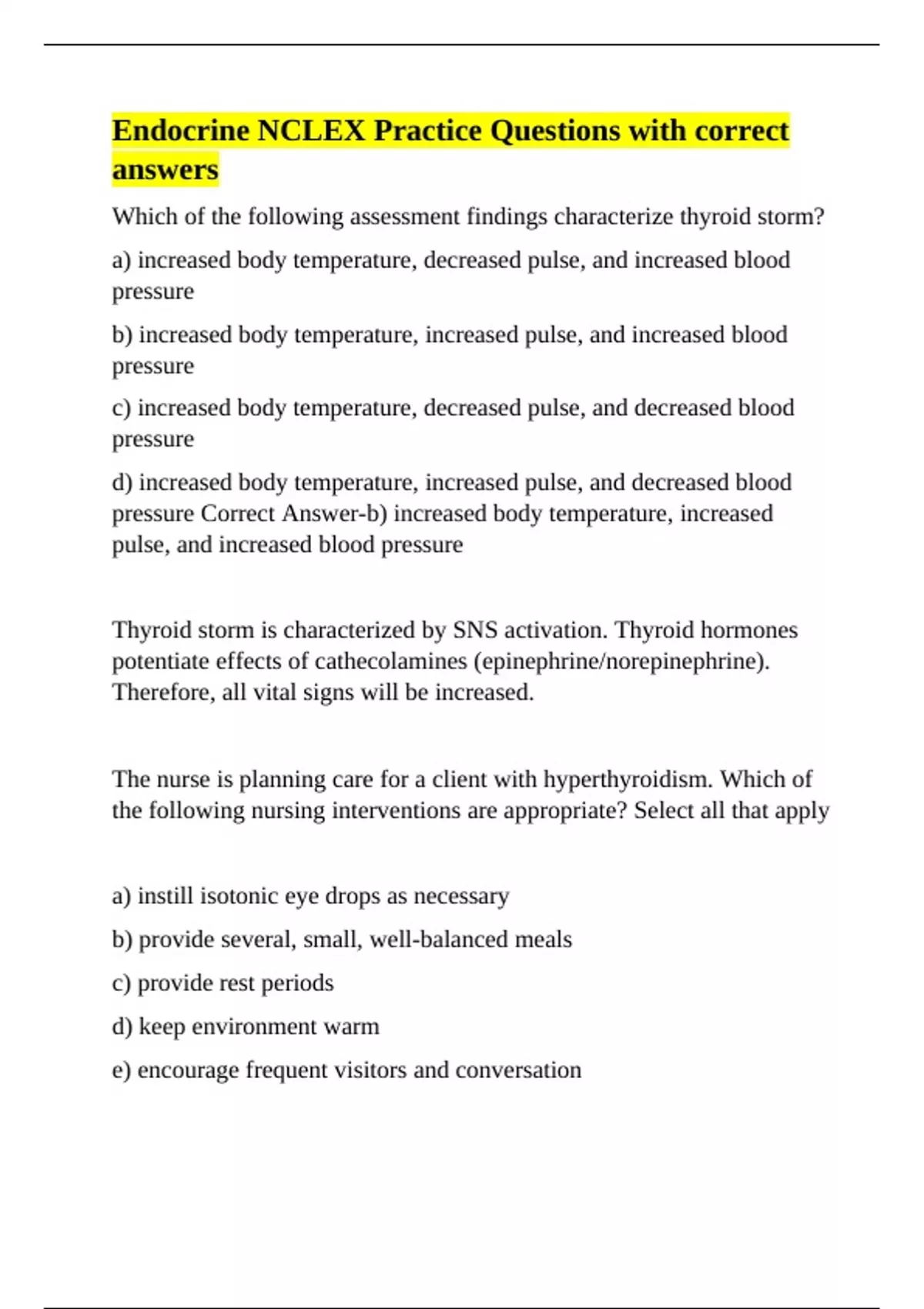 Thyroid storm is characterized by SNS activation. Thyroid hormones