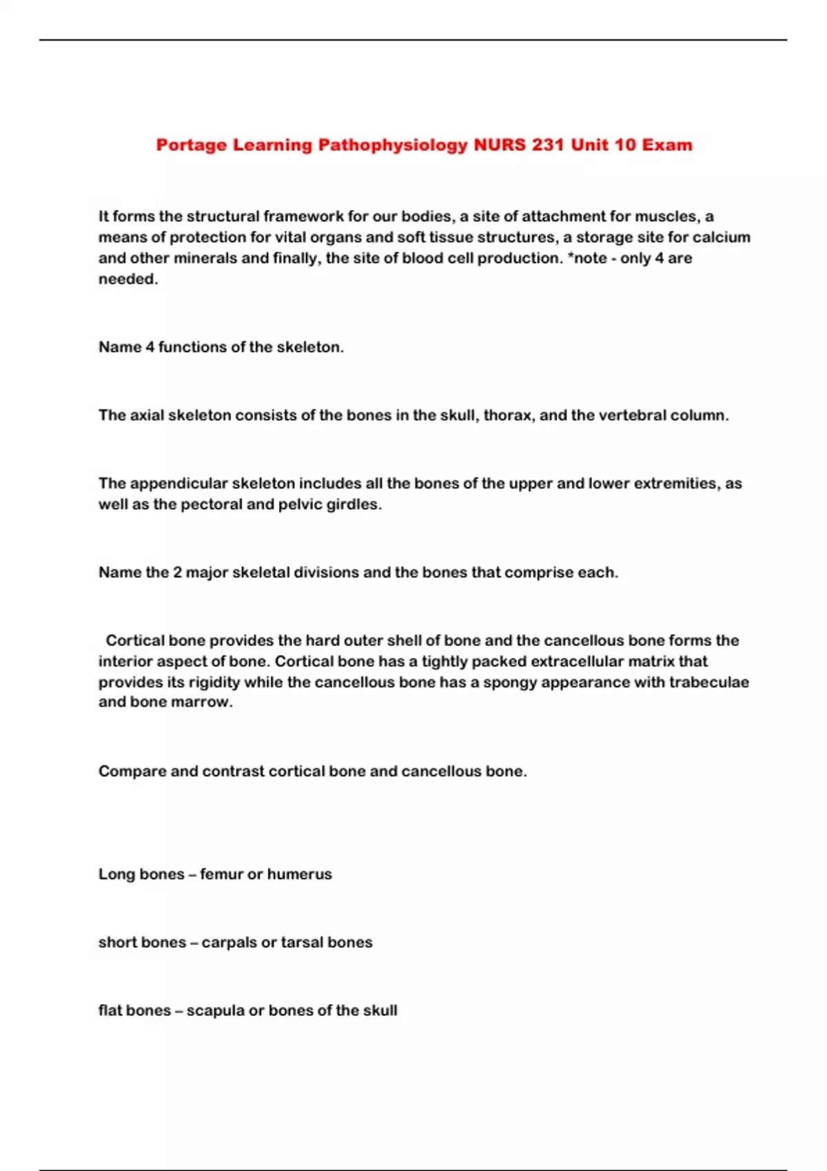 Portage Learning Pathophysiology NURS 231 Unit 10 Exam...