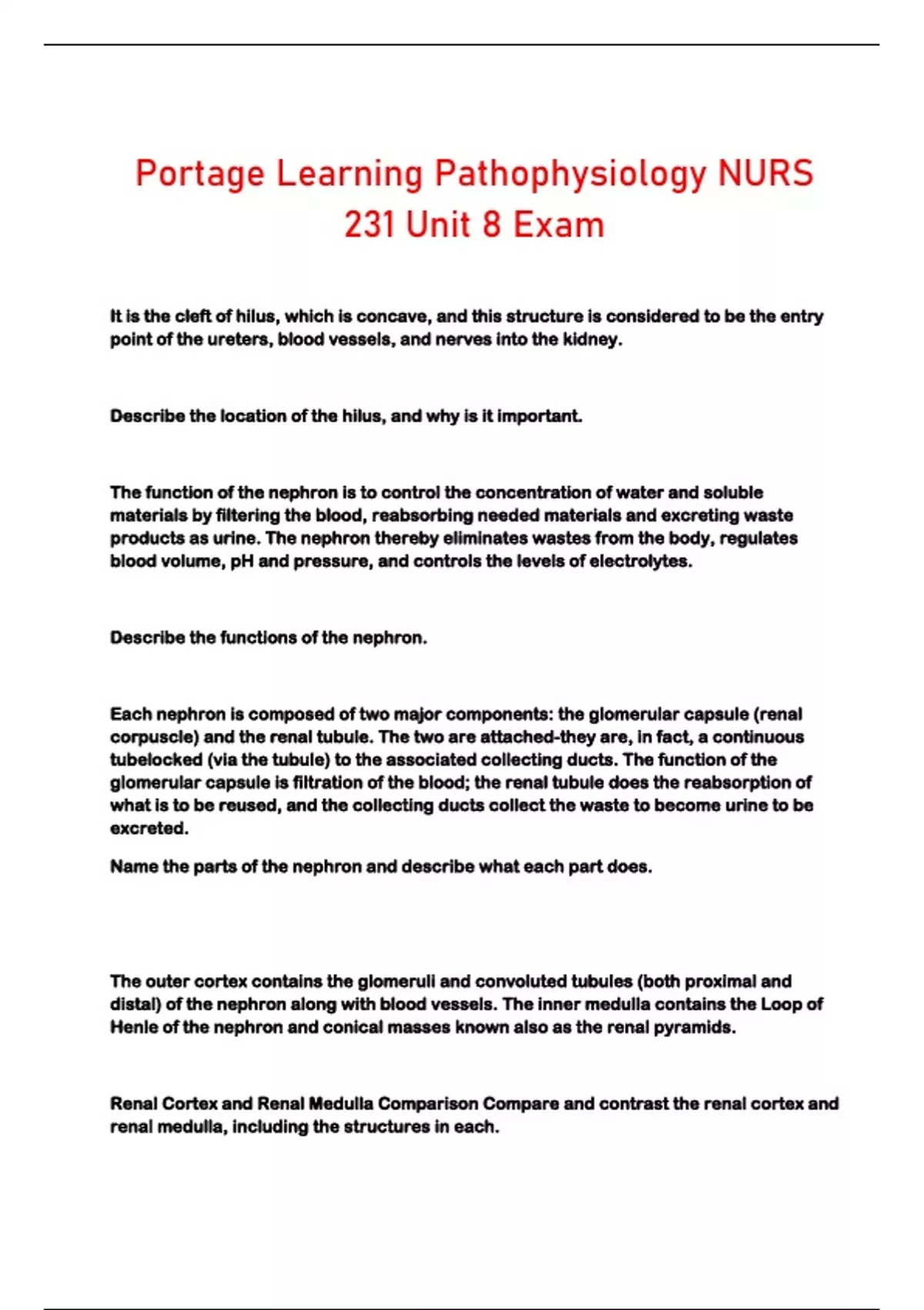 Portage Learning Pathophysiology NURS 231 Unit 8 Exam...