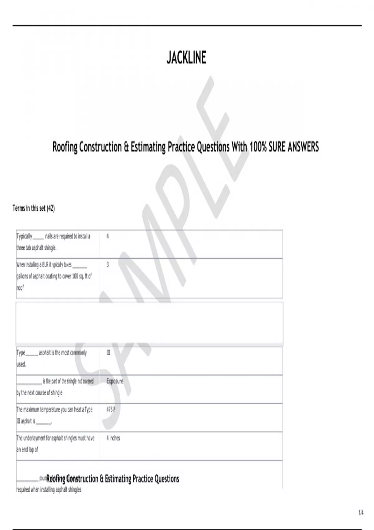 Roofing Construction & Estimating Practice Questions With 100% SURE ANSWERS