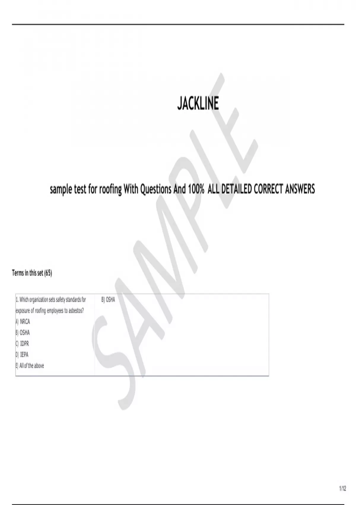sample test for roofing With Questions And 100% ALL DETAILED CORRECT ANSWERS